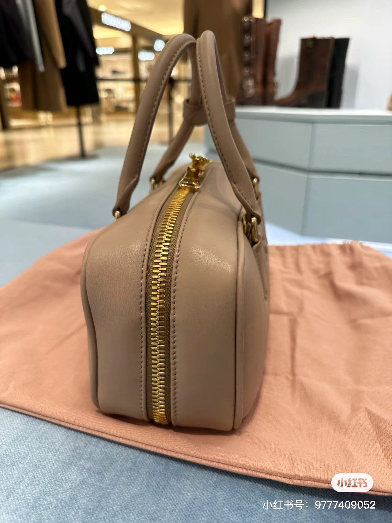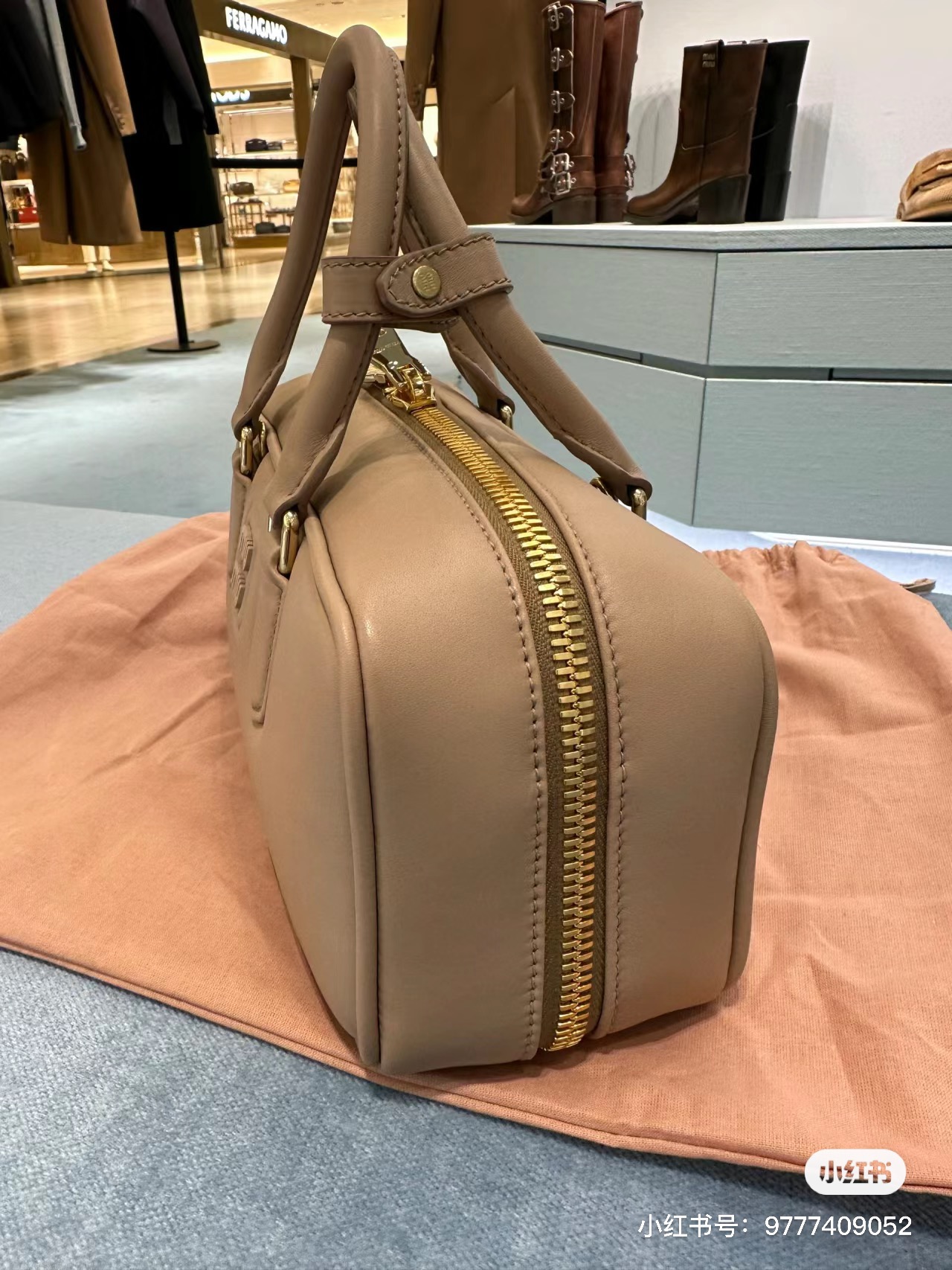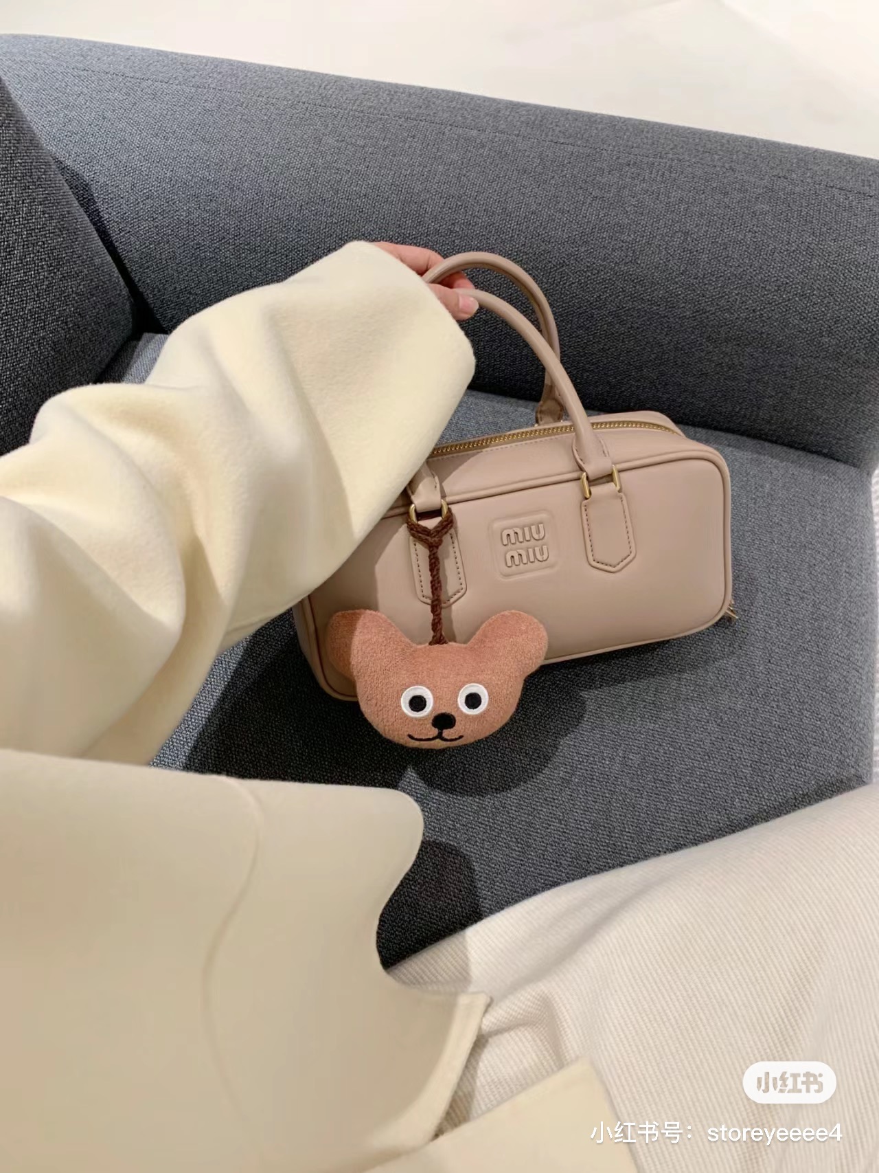 Miu Miu Logo Plaque Mini Bag In Nude