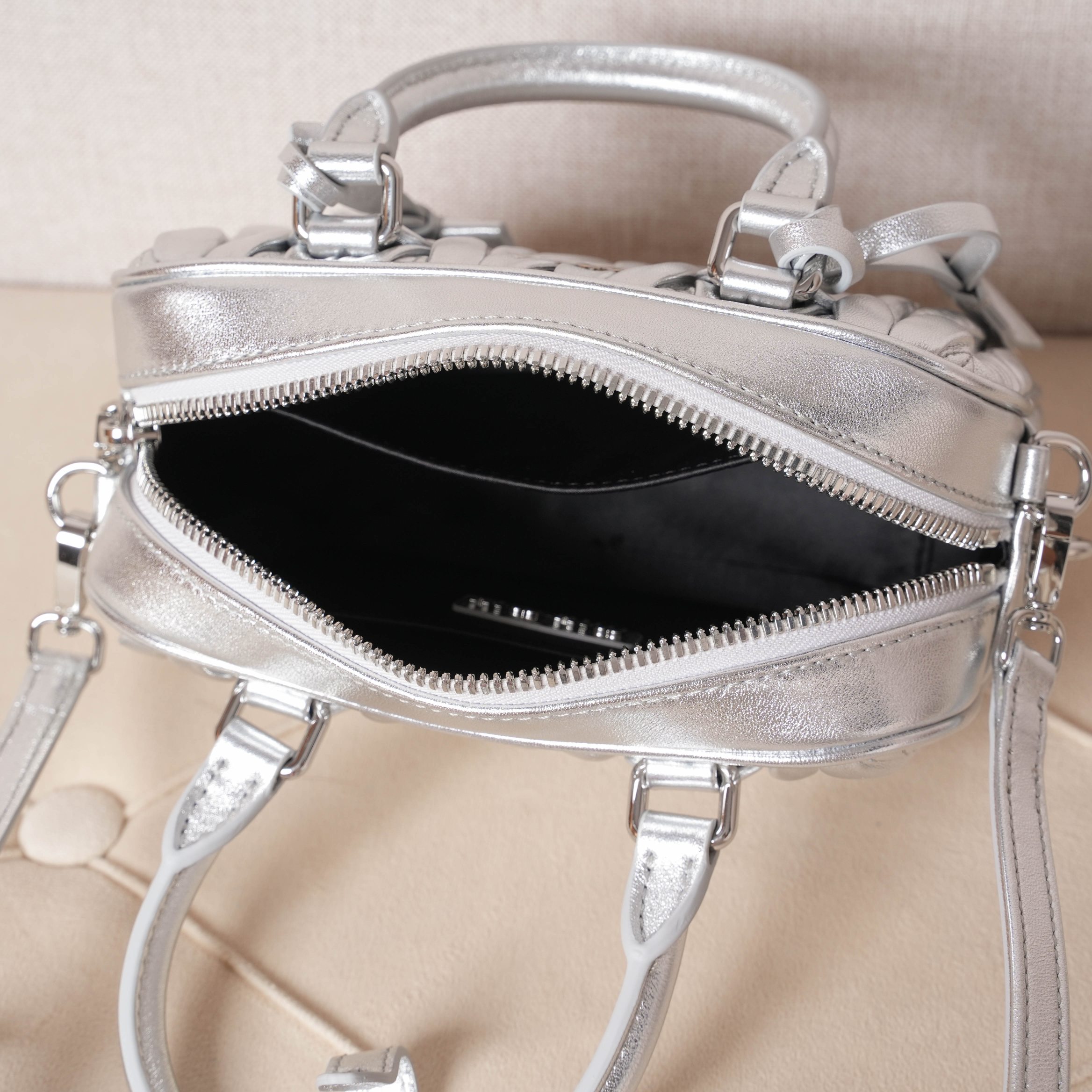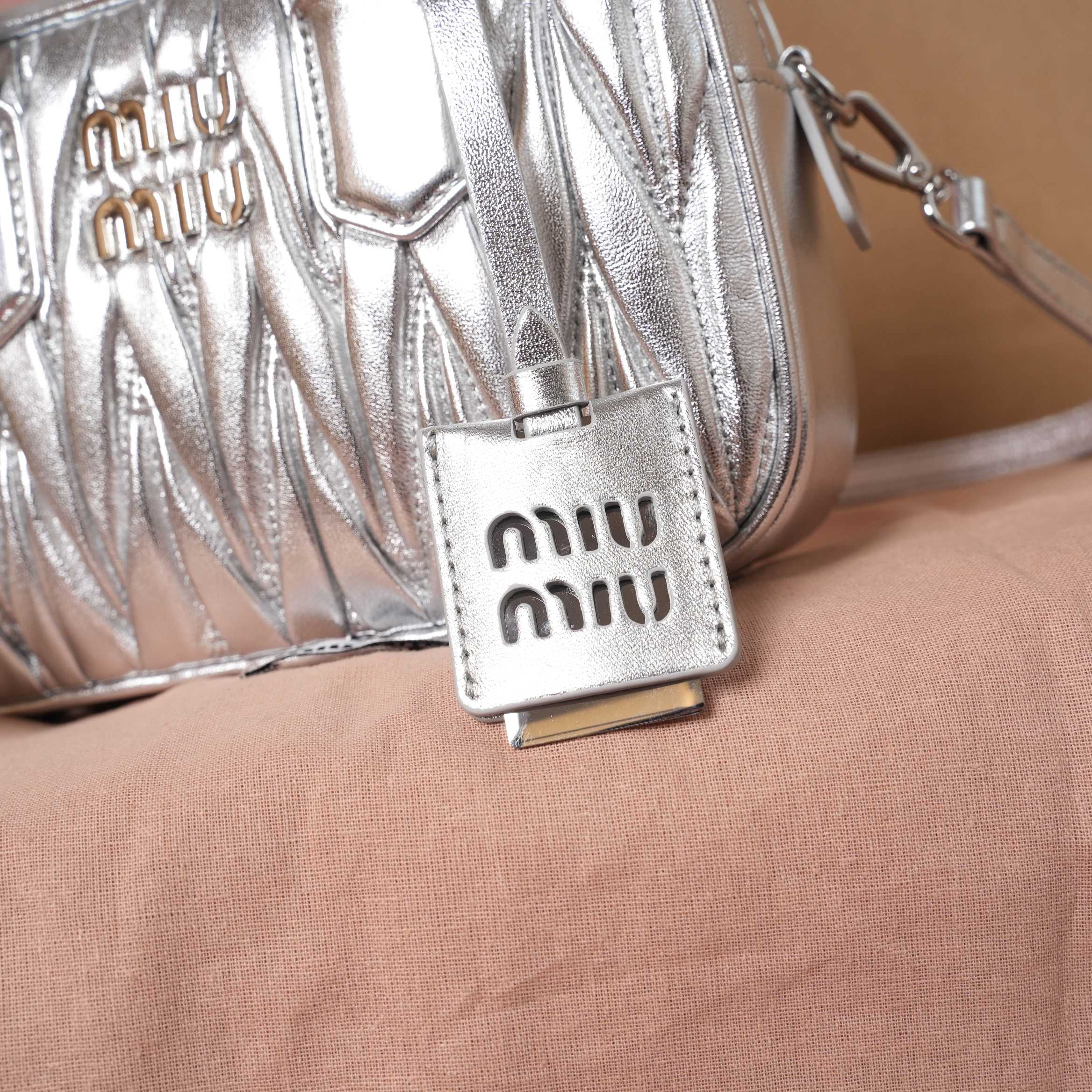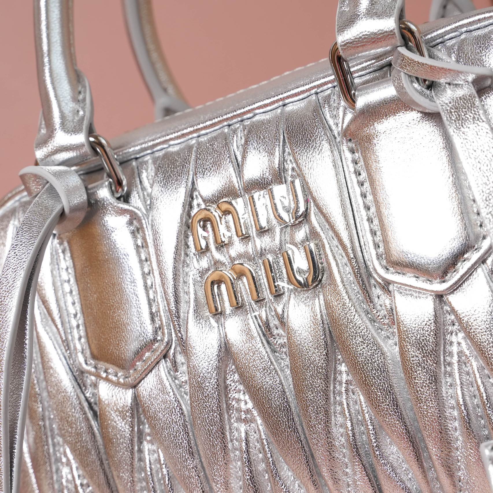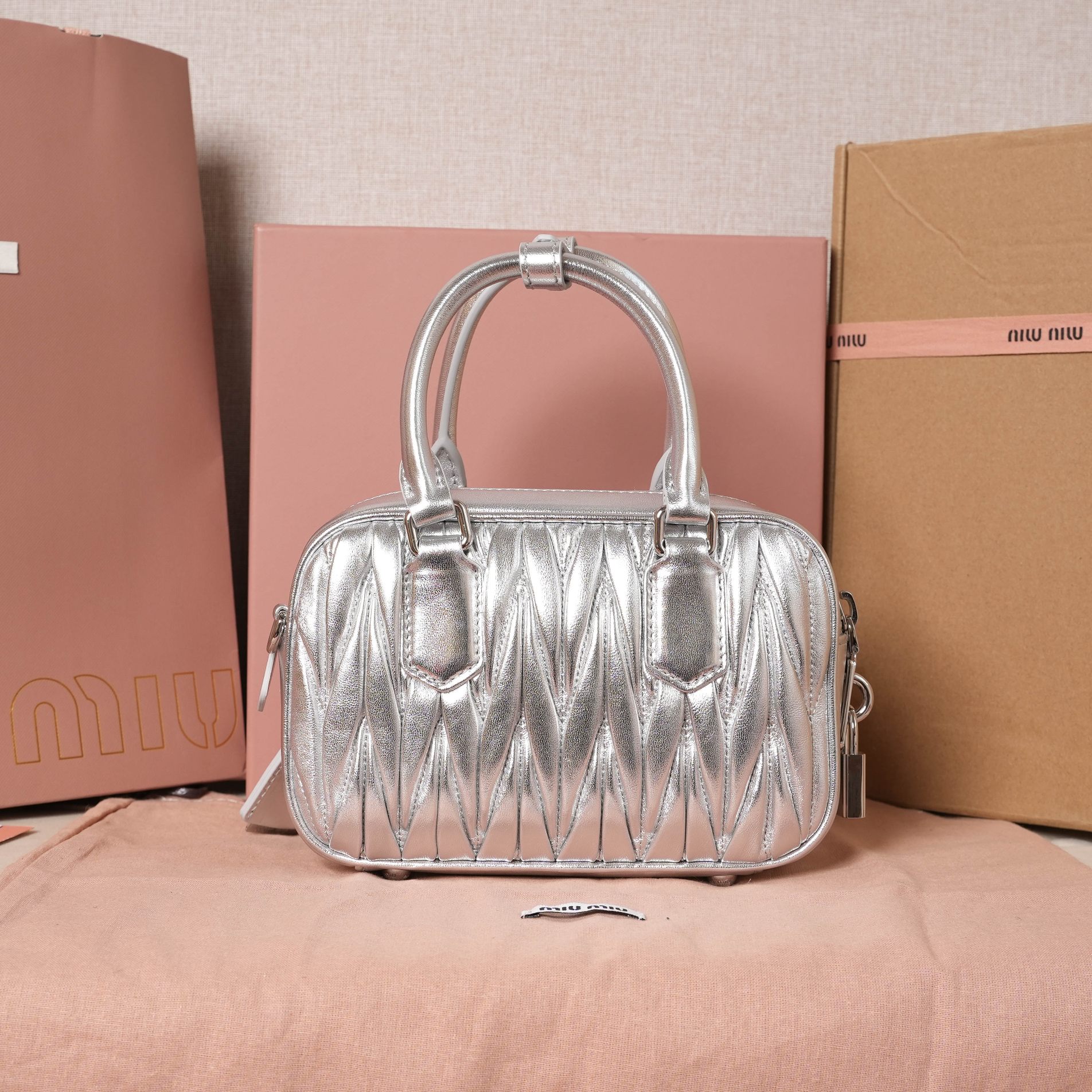 Miu Miu Matelassé Leather Mini Bag - Silver