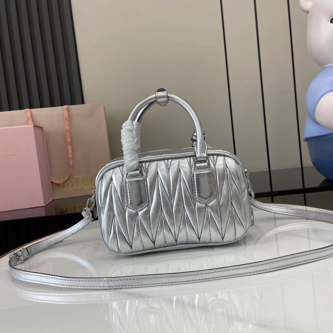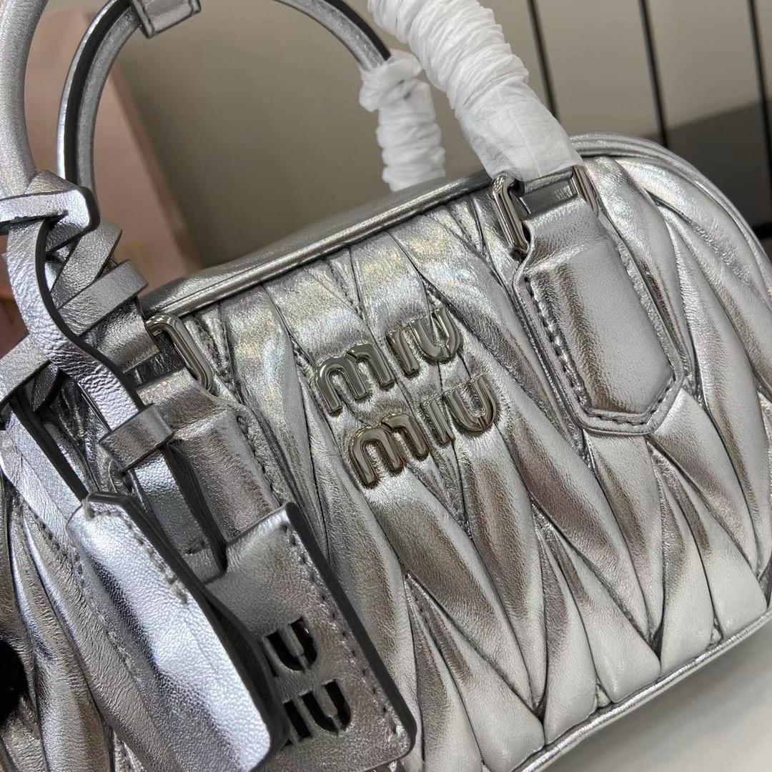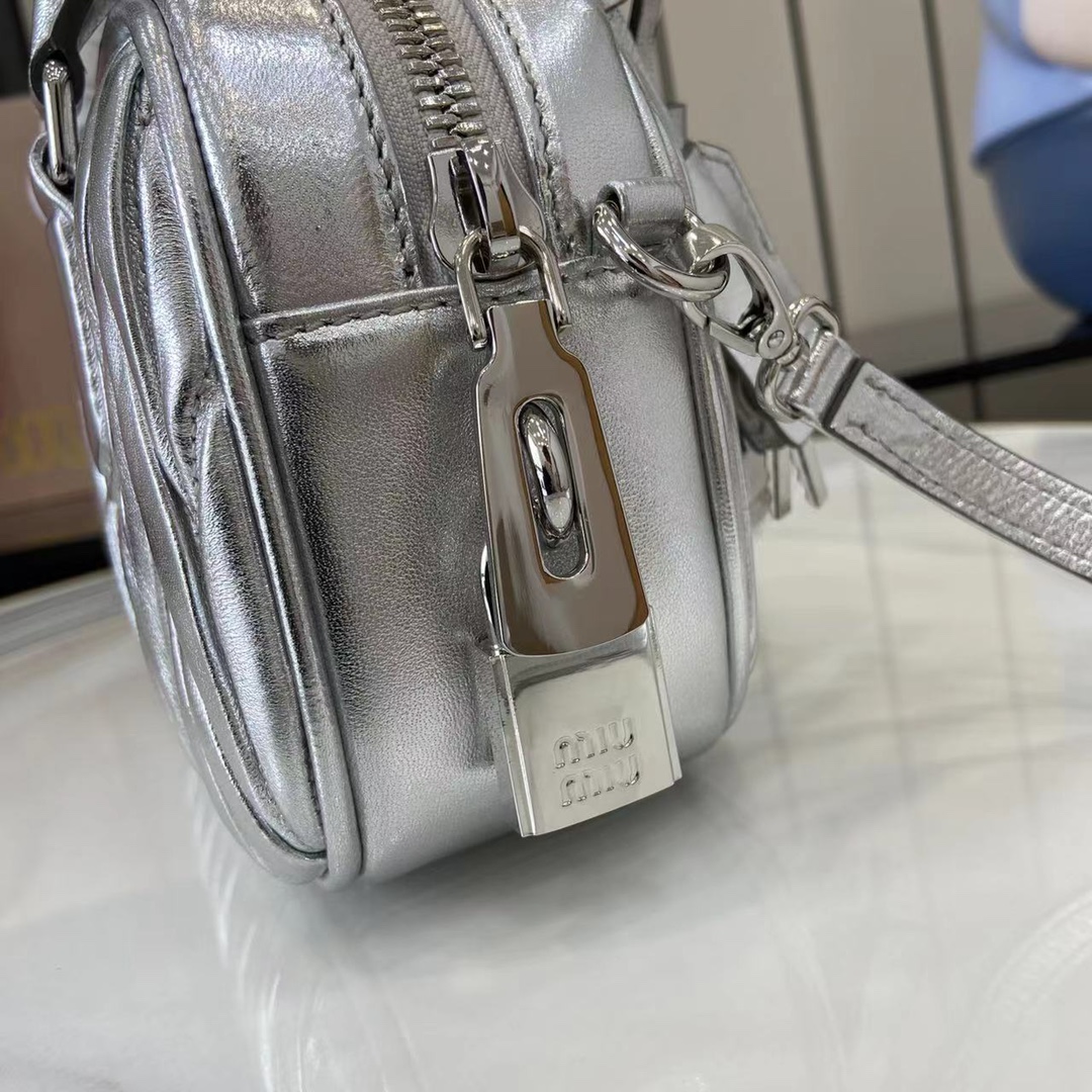 Miu Miu Matelassé Leather Mini Bag - Silver