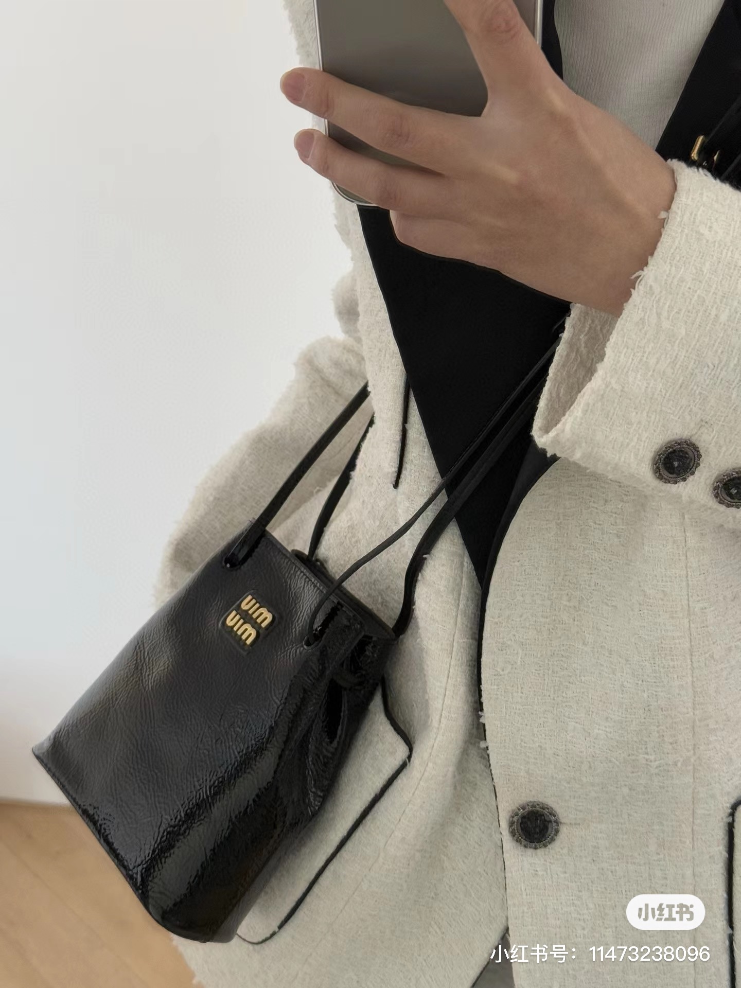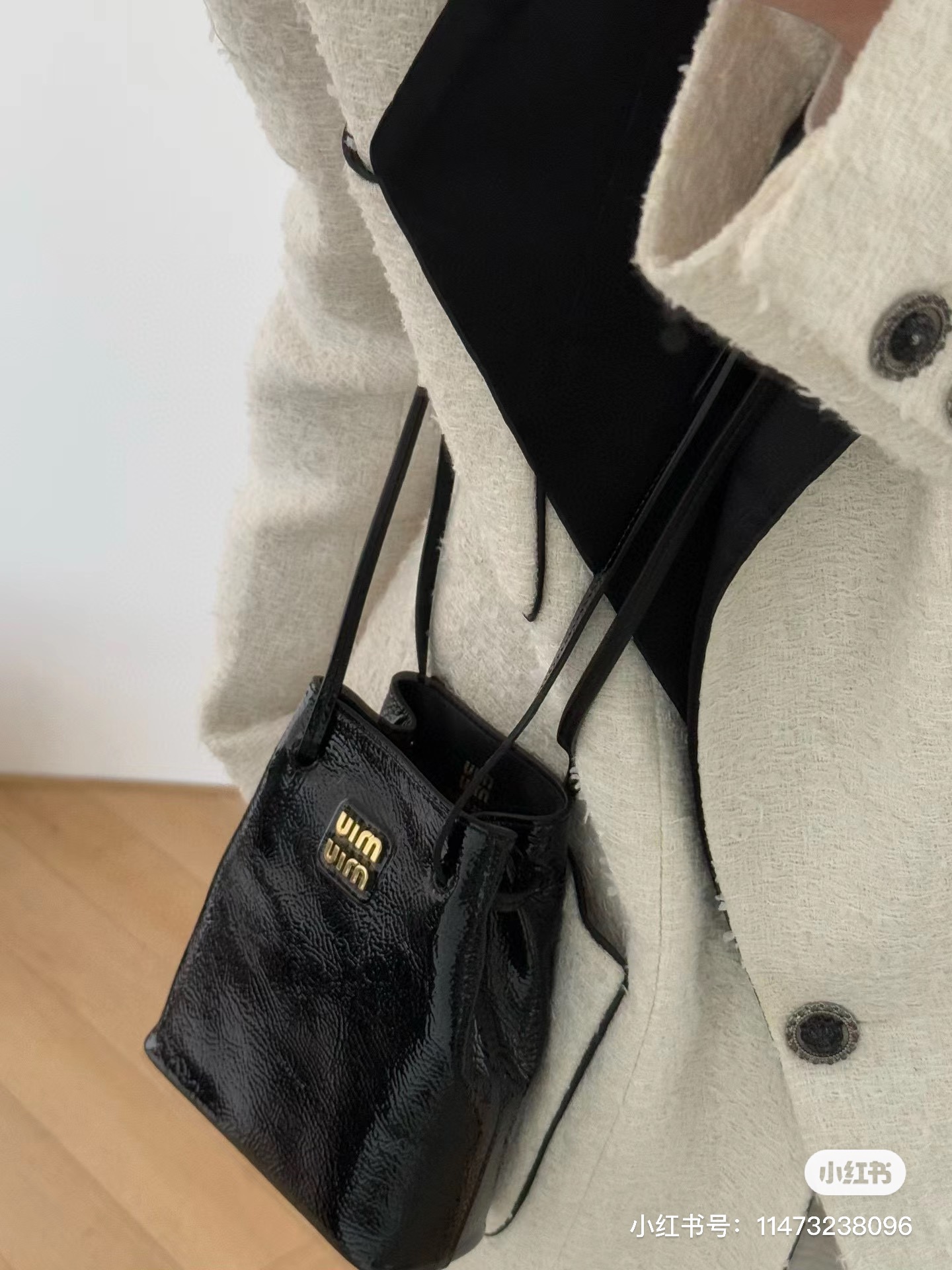 Miu Miu Naplak Patent Leather Shoulder Bag in Black
