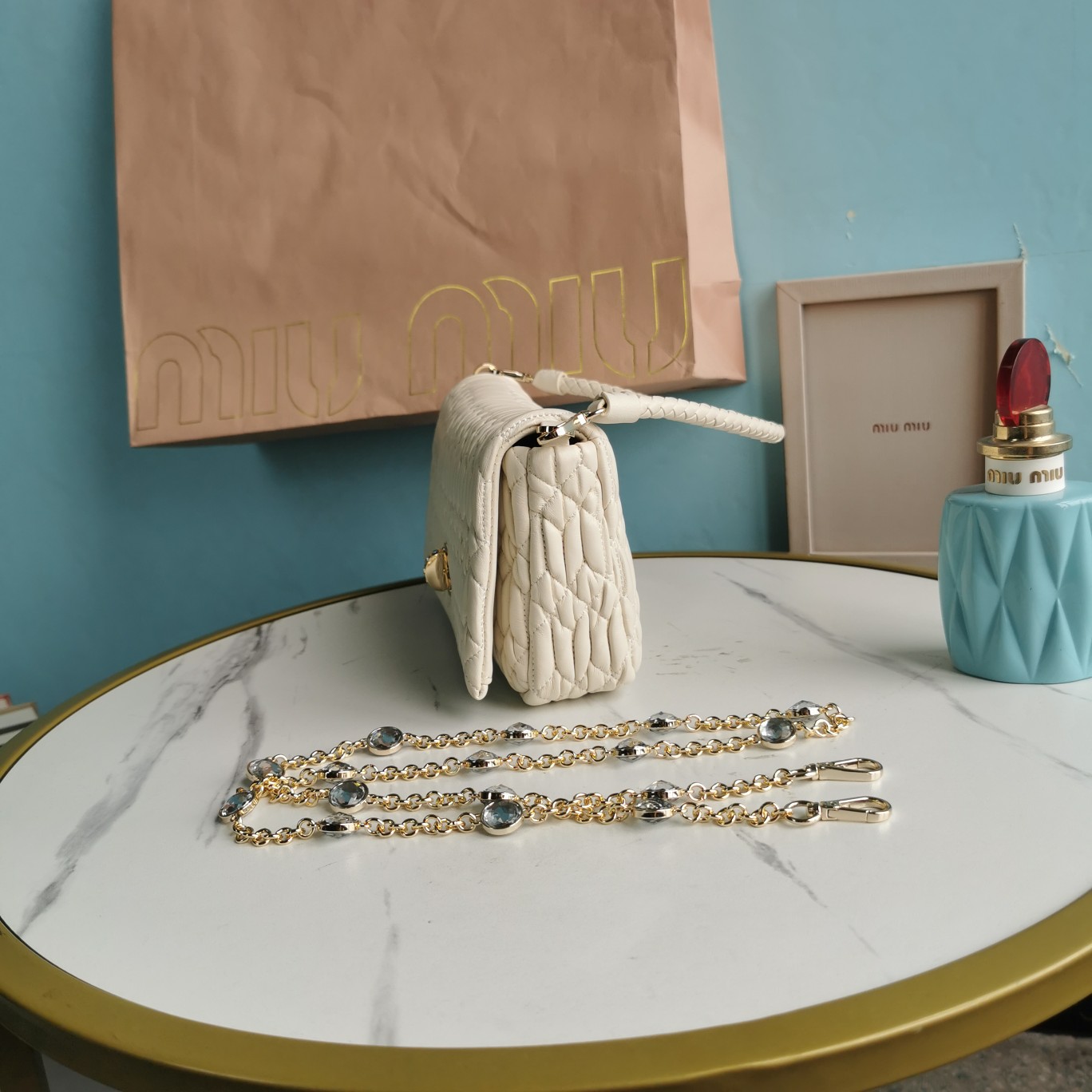 Miu Miu Off White Matelasse Leather Wallet on Chain Miu Miu | TLC