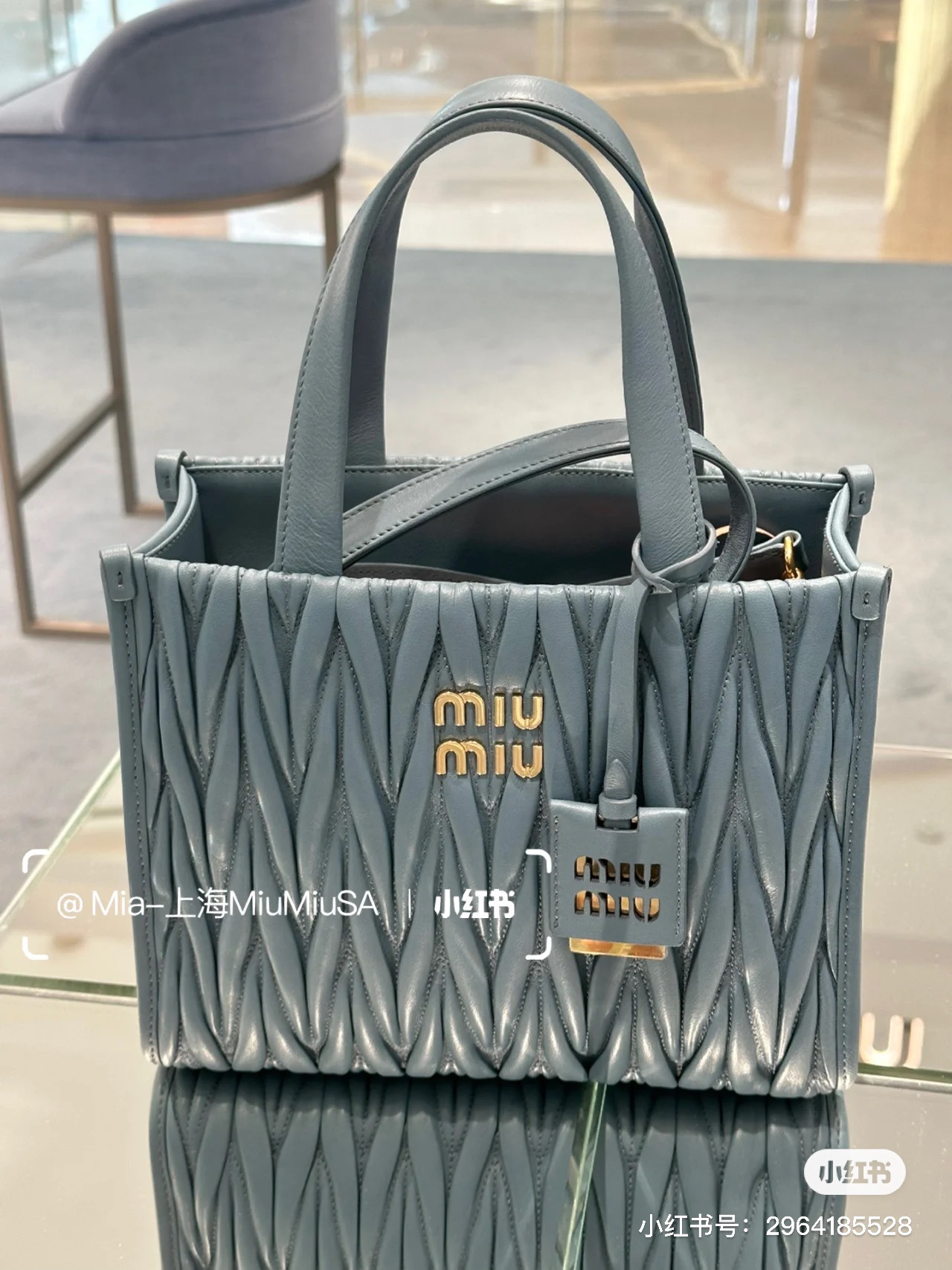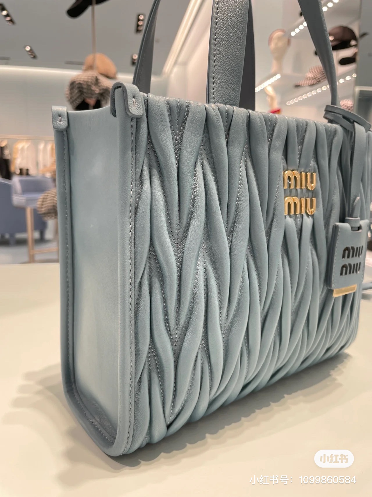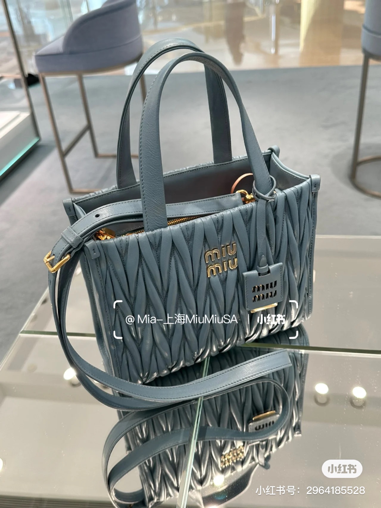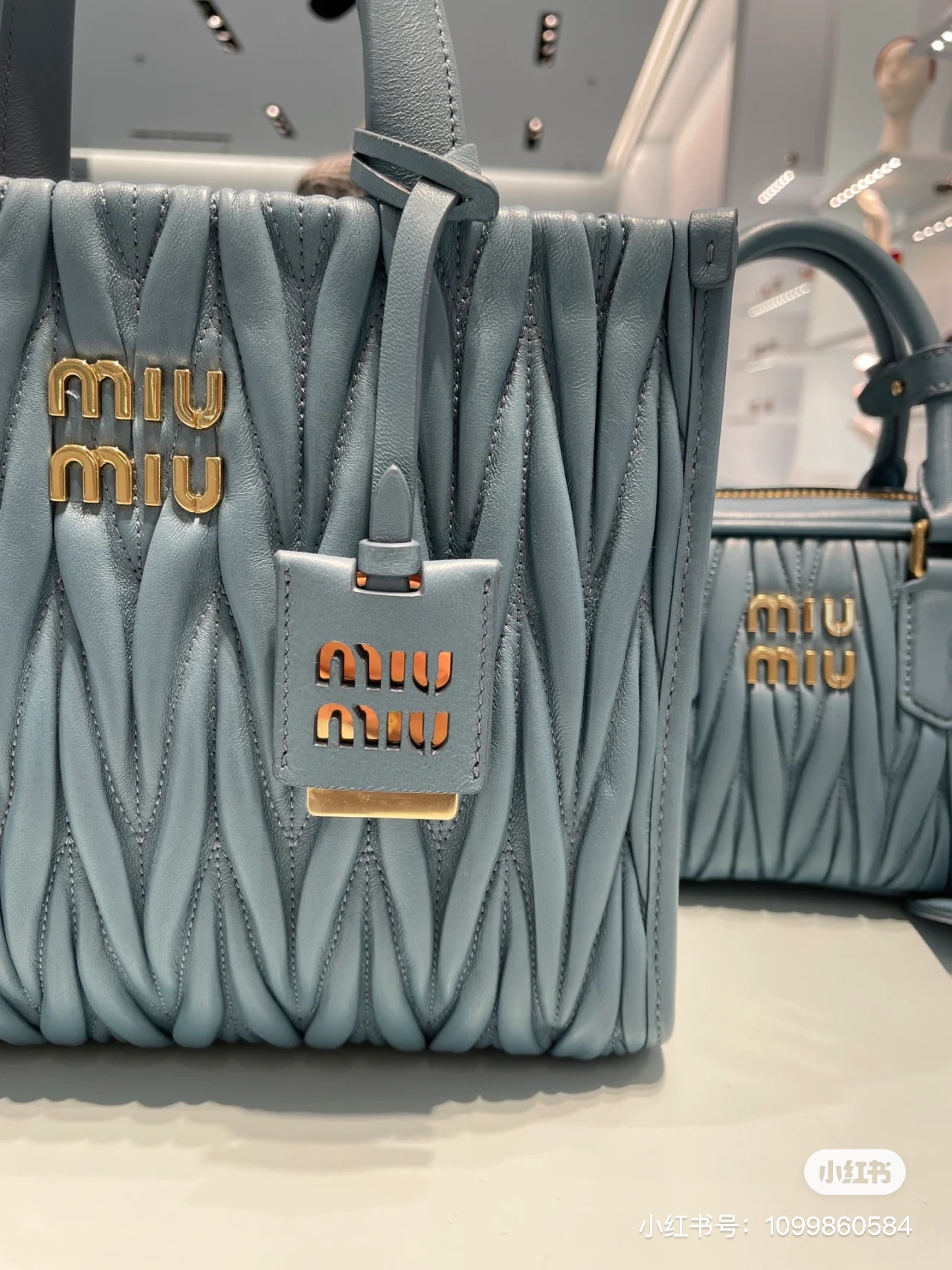 Miu Miu Pre-Owned Matelassé Leather two-way Bag | Blue | Miu Miu 00849