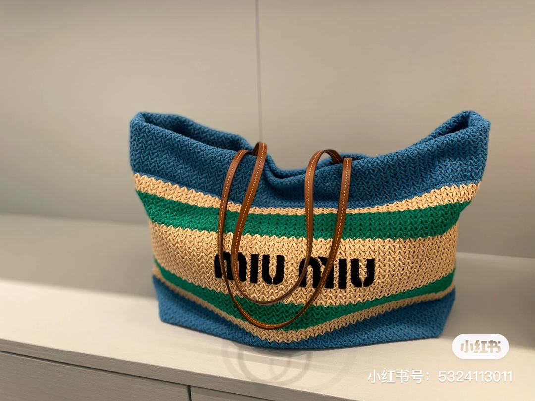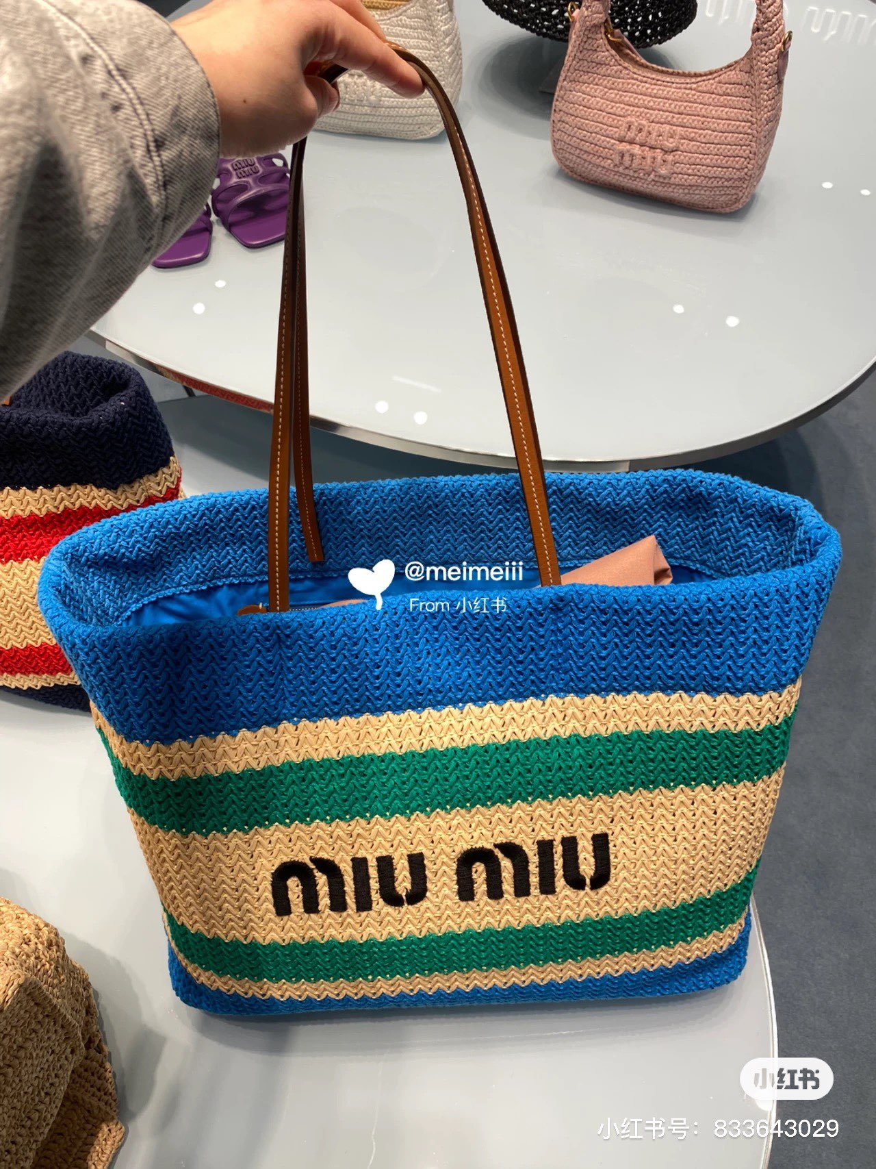 Miu Miu Raffia Tote Bag 'Beige/Light Blue' - 5BG228 2DO3 F075U V OOO