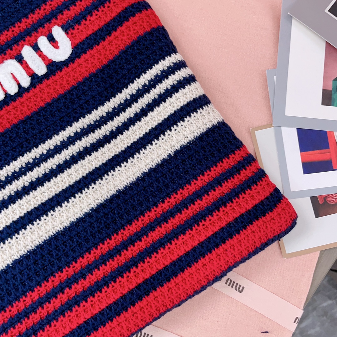 Miu Miu Striped crochet-knit Tote Bag | Blue red