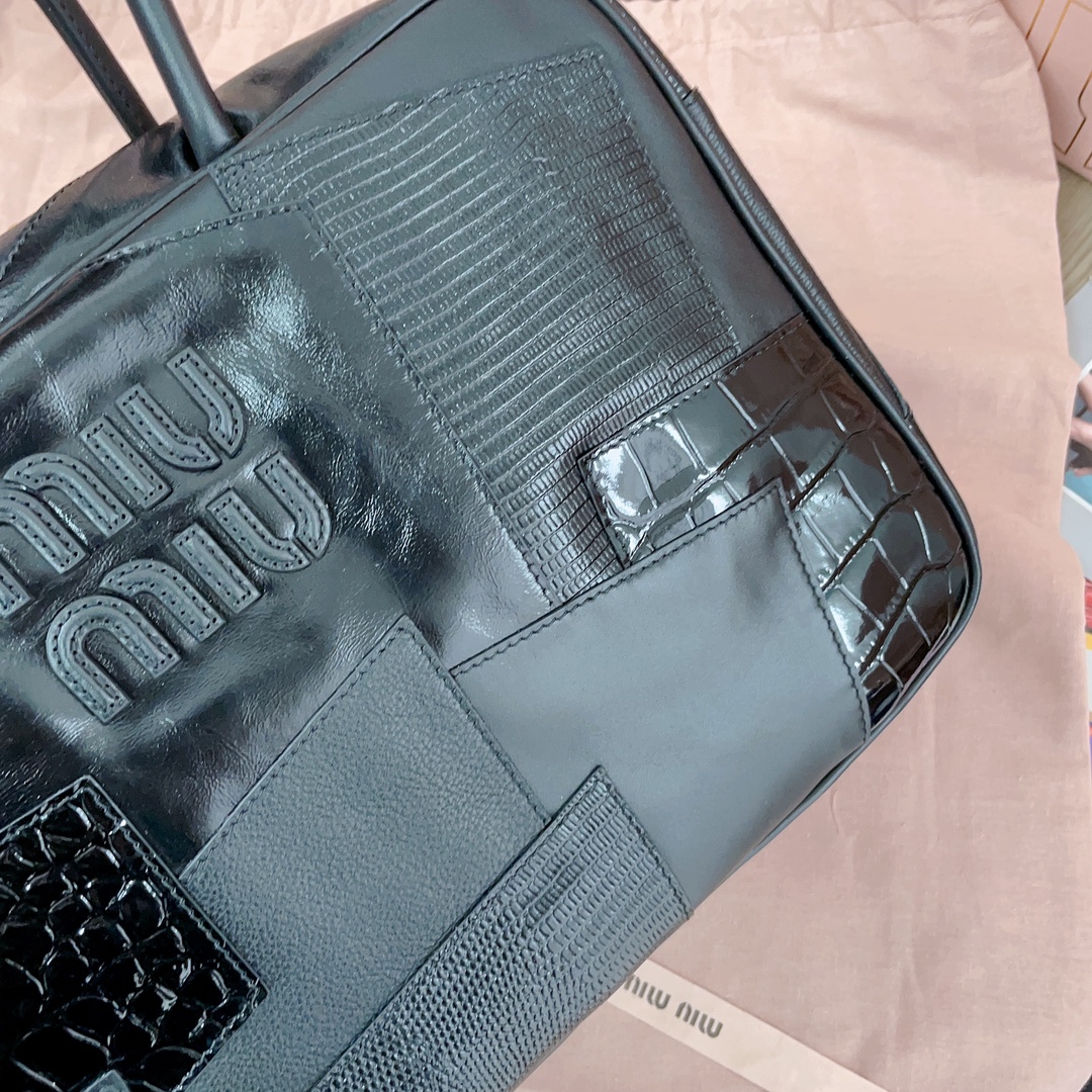 miumiu Leather Patchwork Bow Bag Rare Black Gift Present