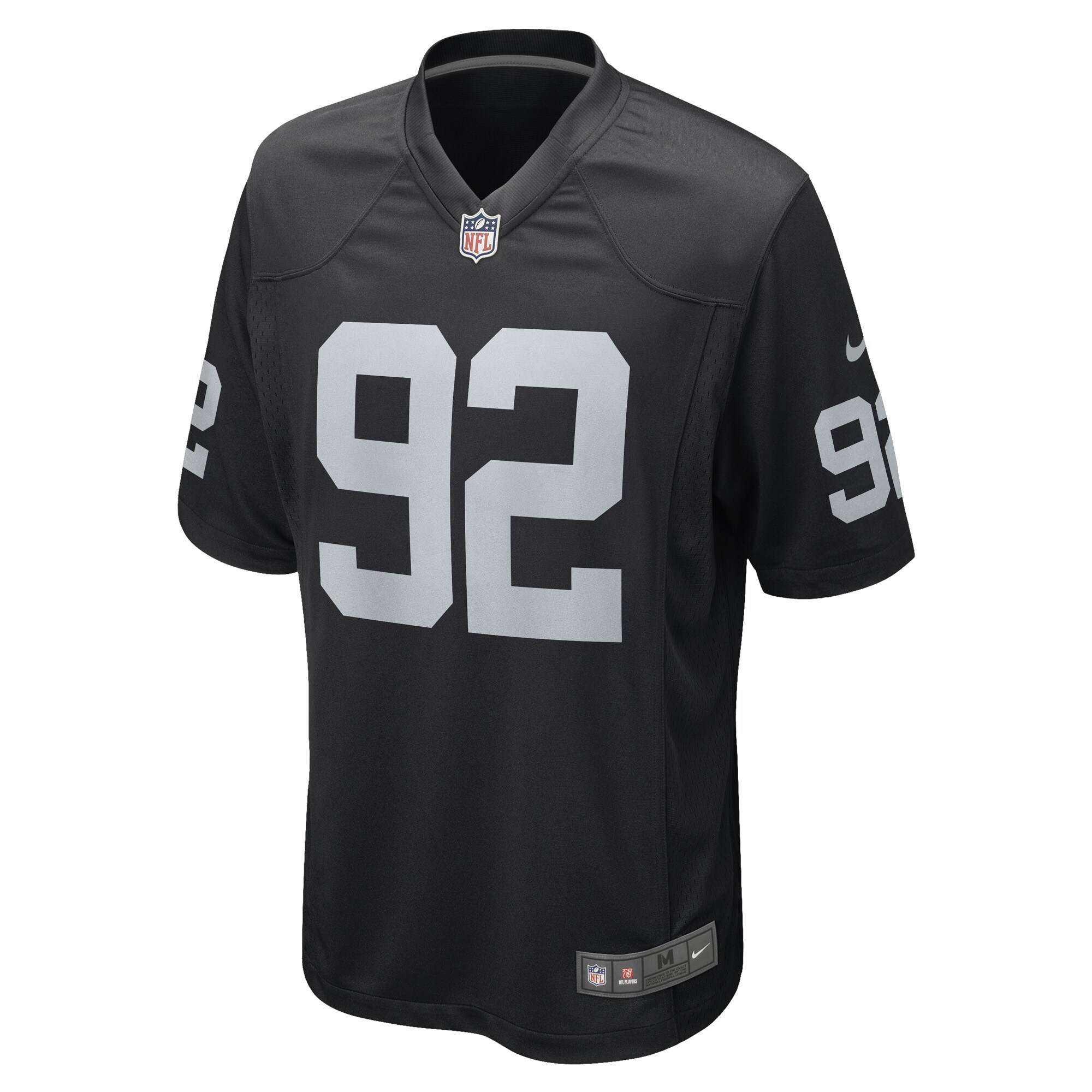 Rep the on-field look of your favorite Las Vegas Raiders player with this Neil Farrell Jr. Game jersey from Nike. Its heat-sealed name, numbers and team details provide a kickoff-ready aesthetic while also offering a comfortable, lightweight feel. Designed for everyday movement, this jersey has a versatile tailored fit and features mesh side panels for added ventilation as you celebrate every big play by the Las Vegas Raiders this season.
