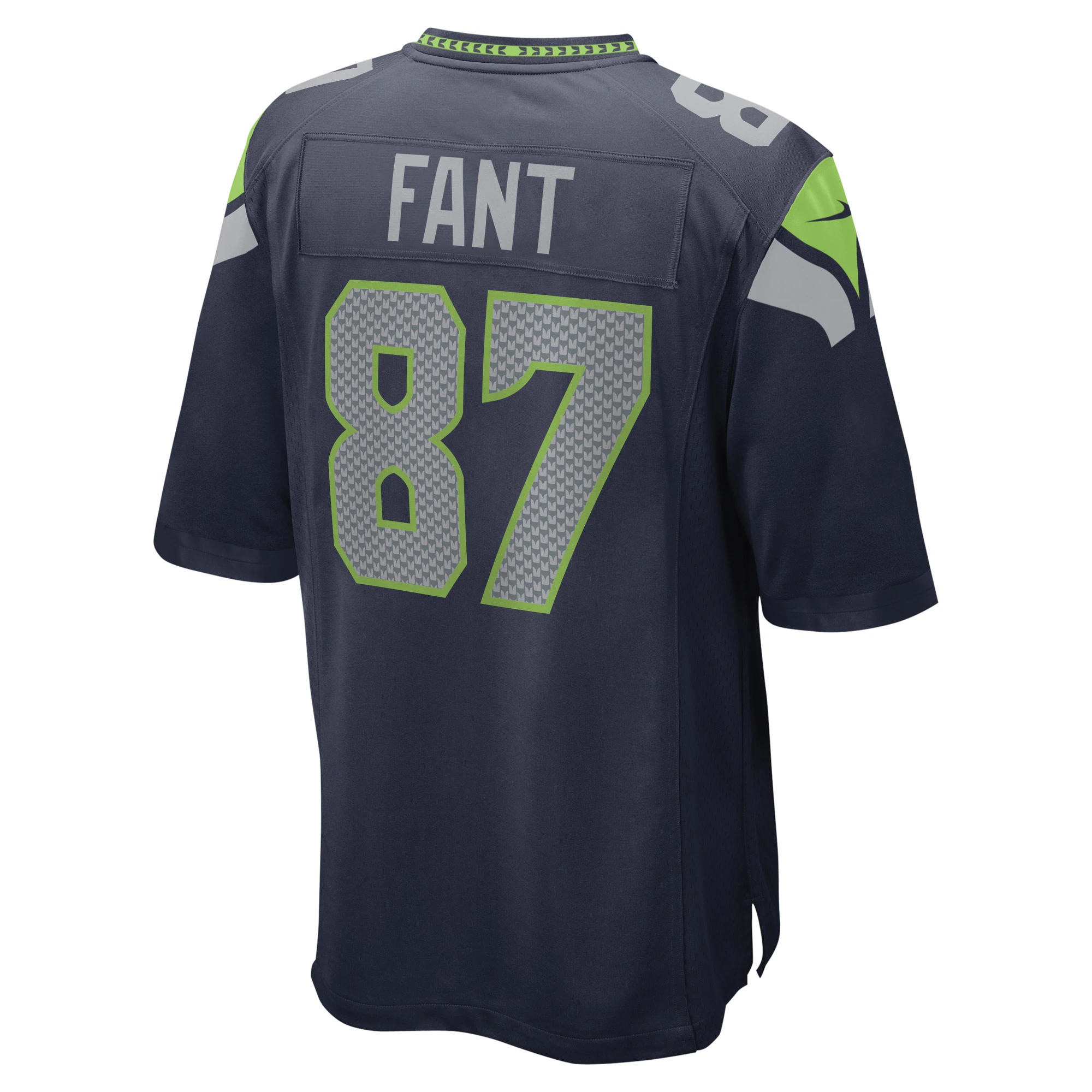 Rep the on-field look of your favorite Seattle Seahawks player with this Noah Fant Game jersey from Nike. Its heat-sealed name, numbers and team details provide a kickoff-ready aesthetic while also offering a comfortable, lightweight feel. Designed for everyday movement, this jersey has a versatile tailored fit and features mesh side panels for added ventilation as you celebrate every big play by the Seattle Seahawks this season.