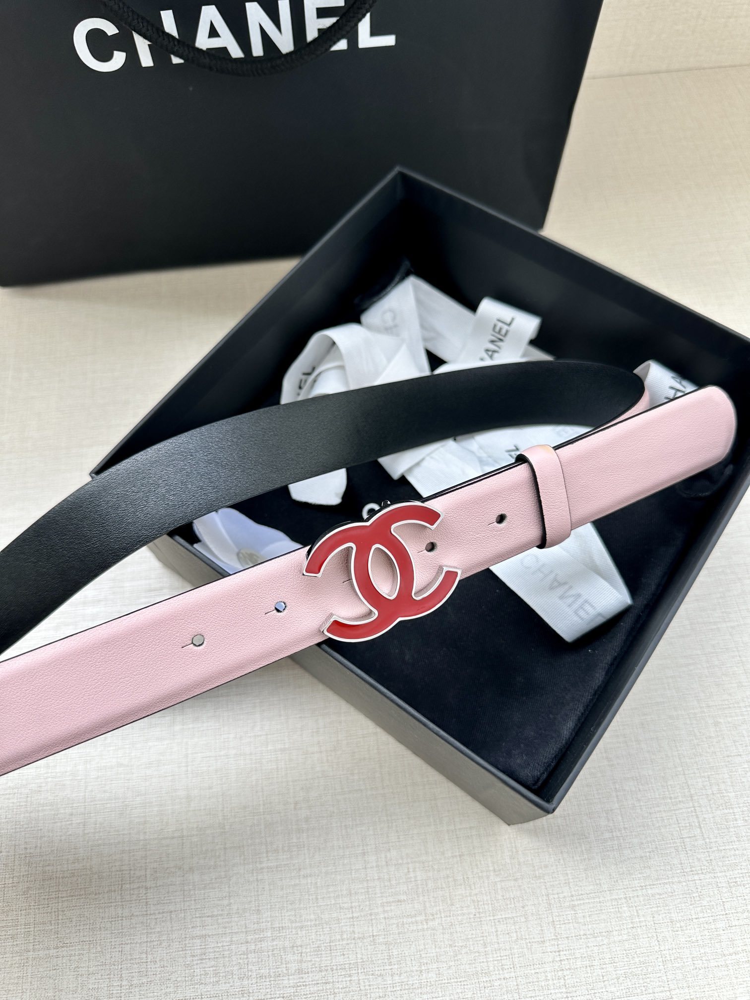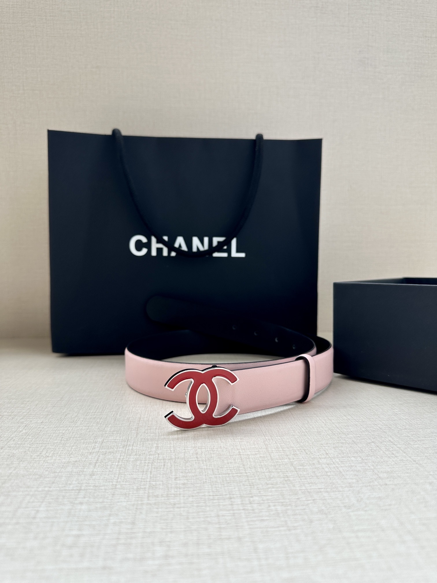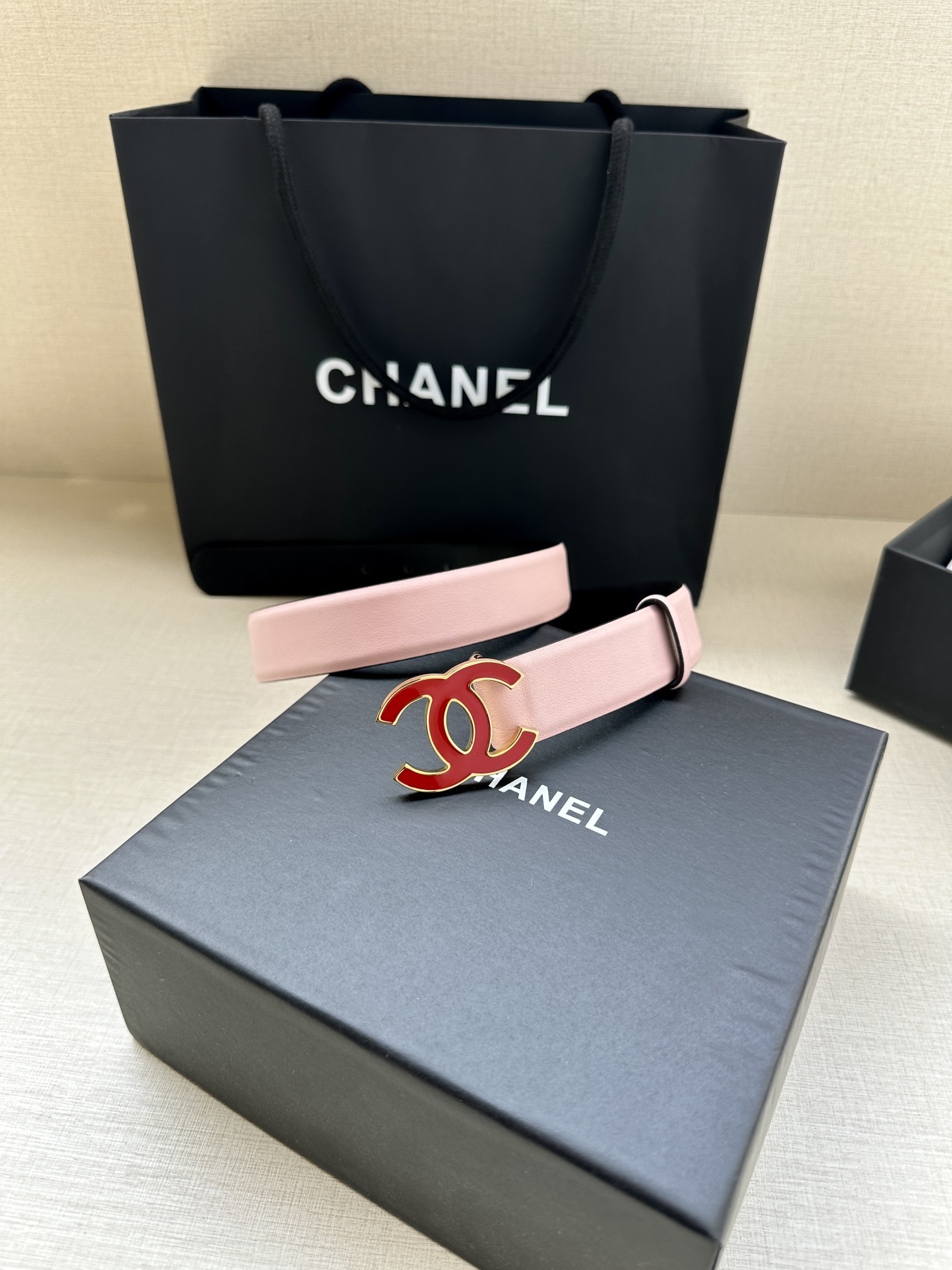 Pink Leather Belt with Red Enamel CC Buckle - Luxury Edition