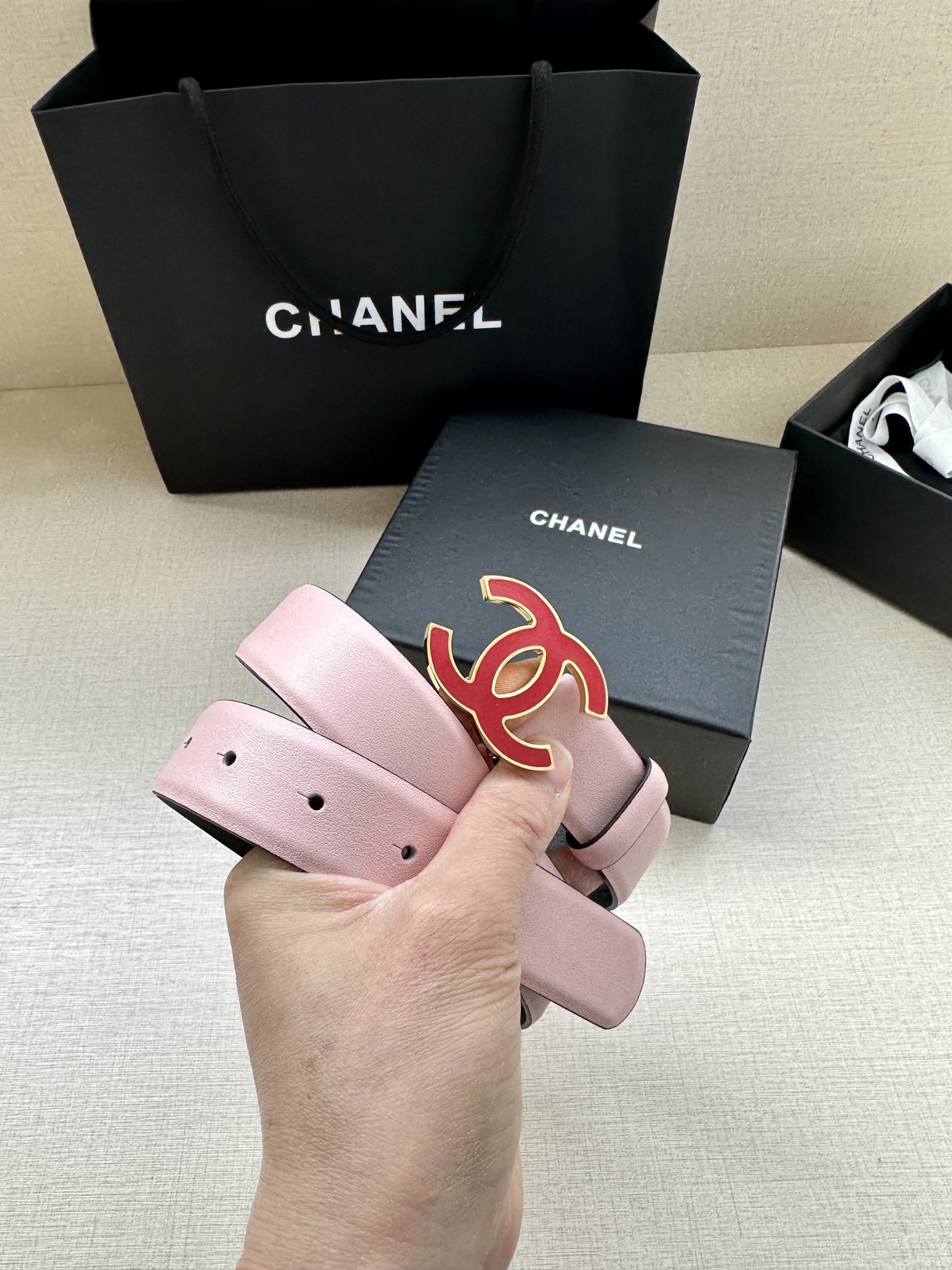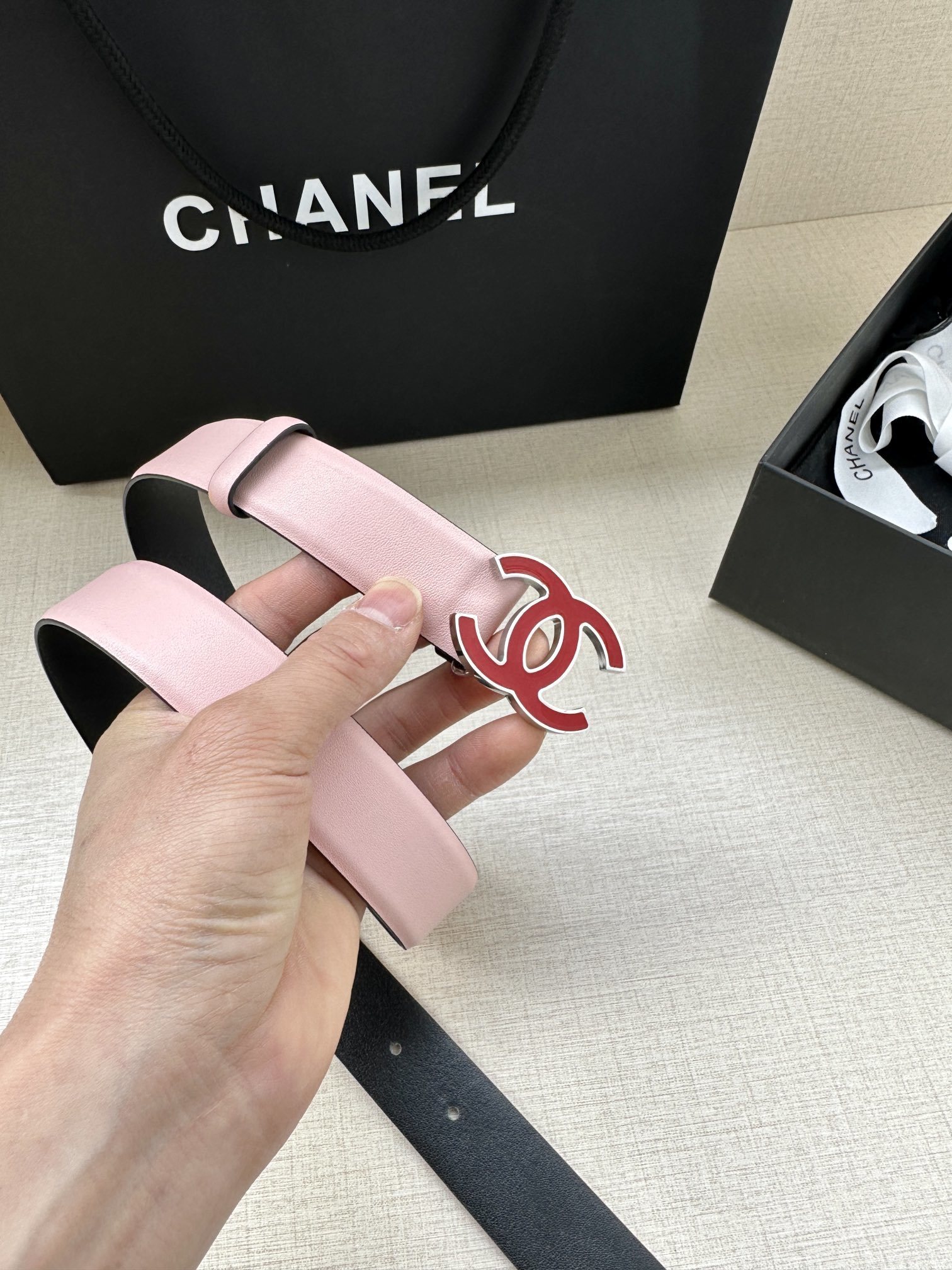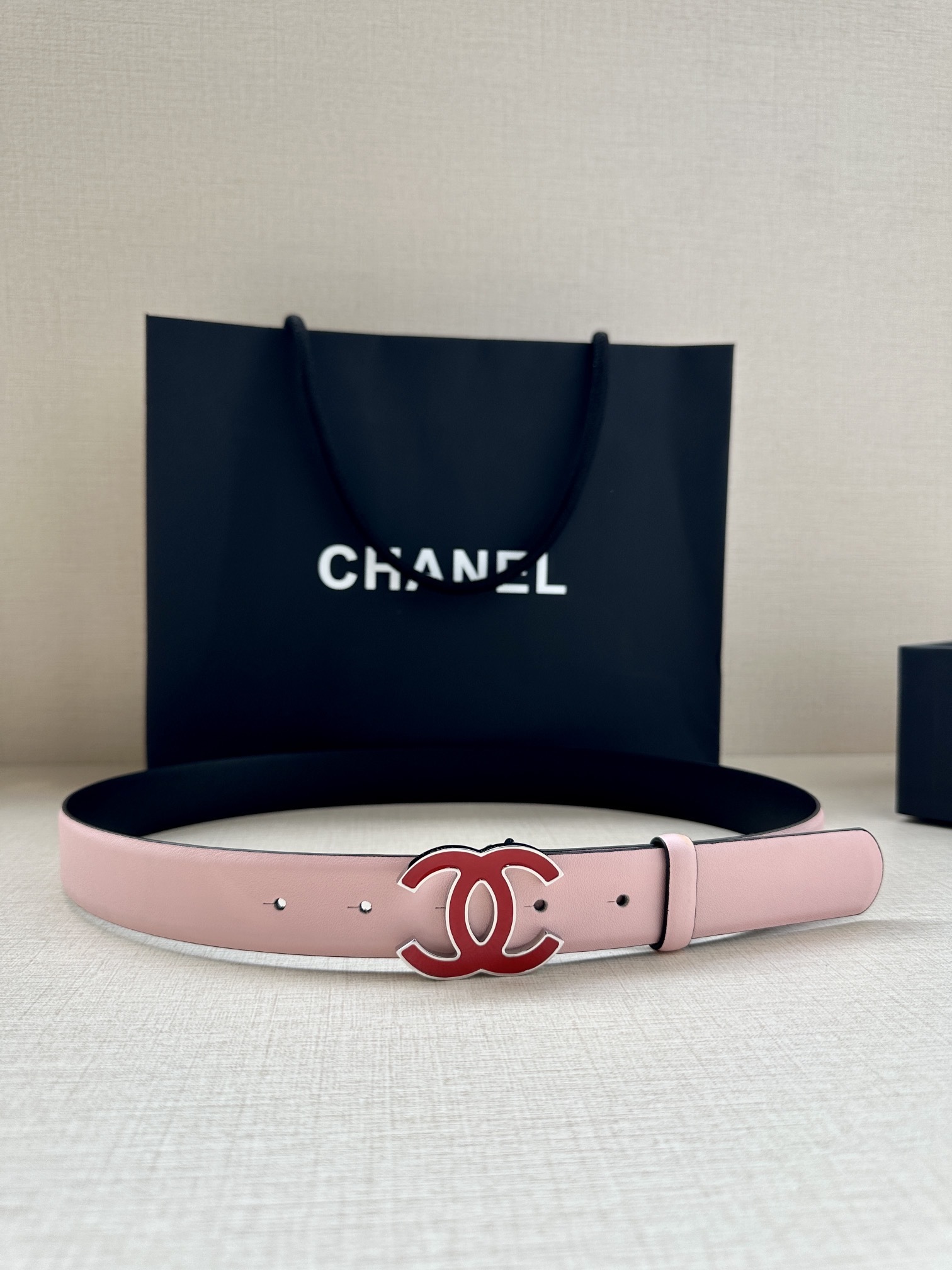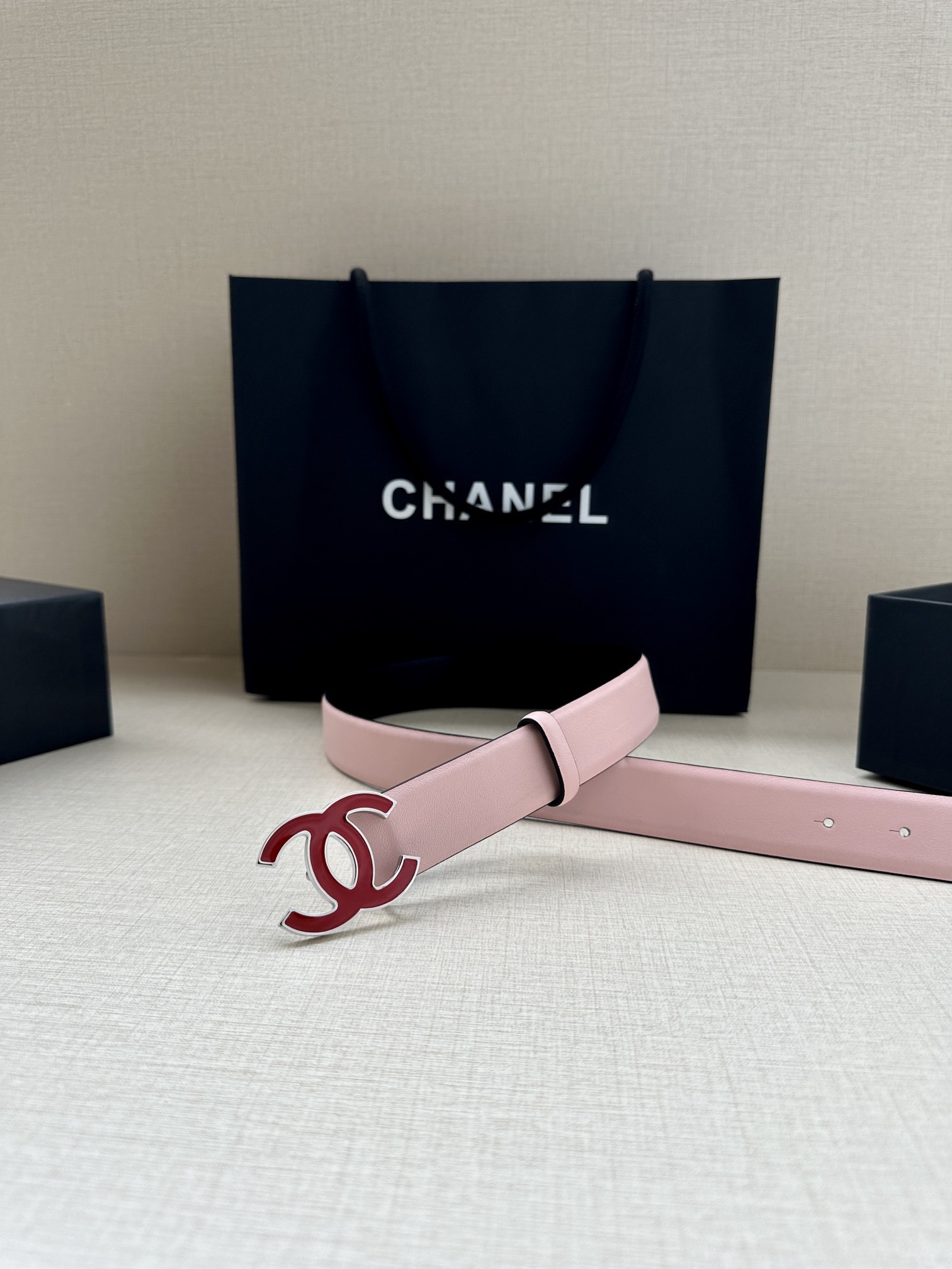 Pink Leather Belt with Red Enamel CC Buckle - Luxury Edition