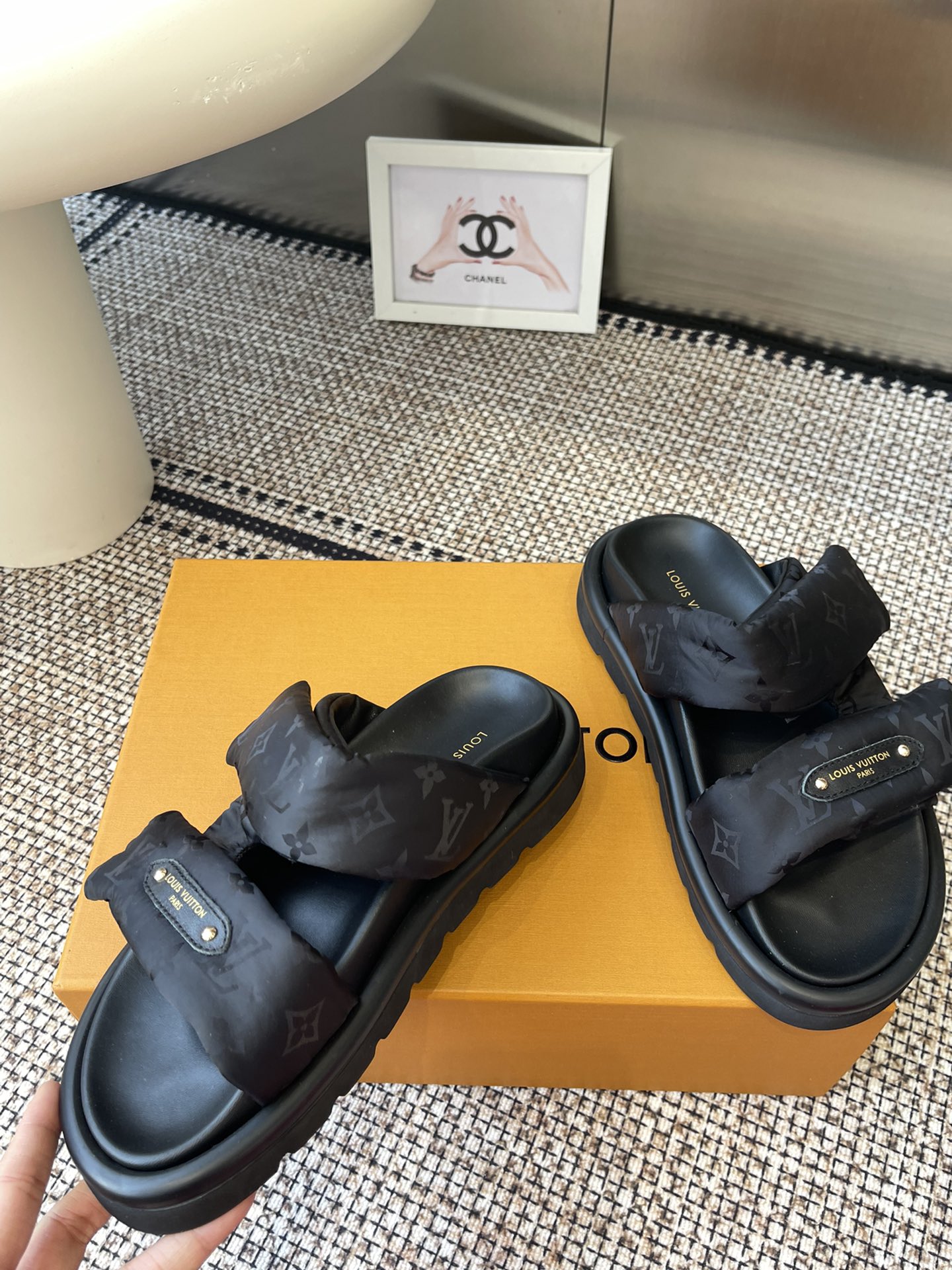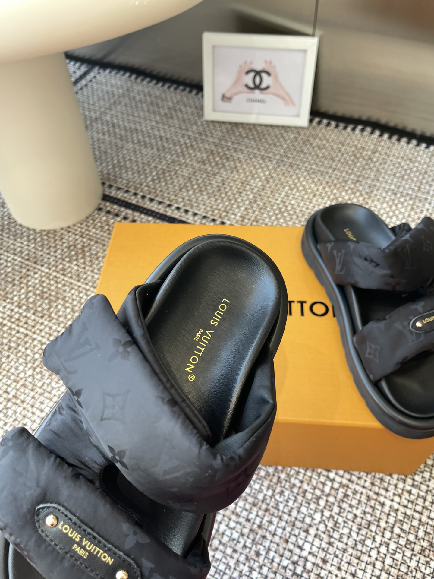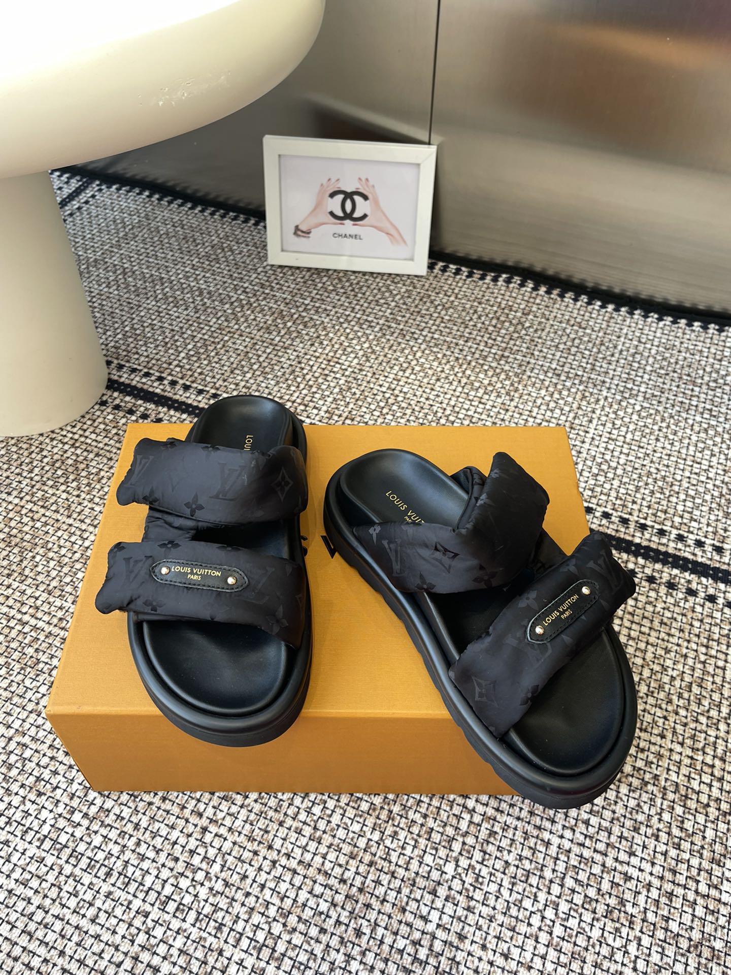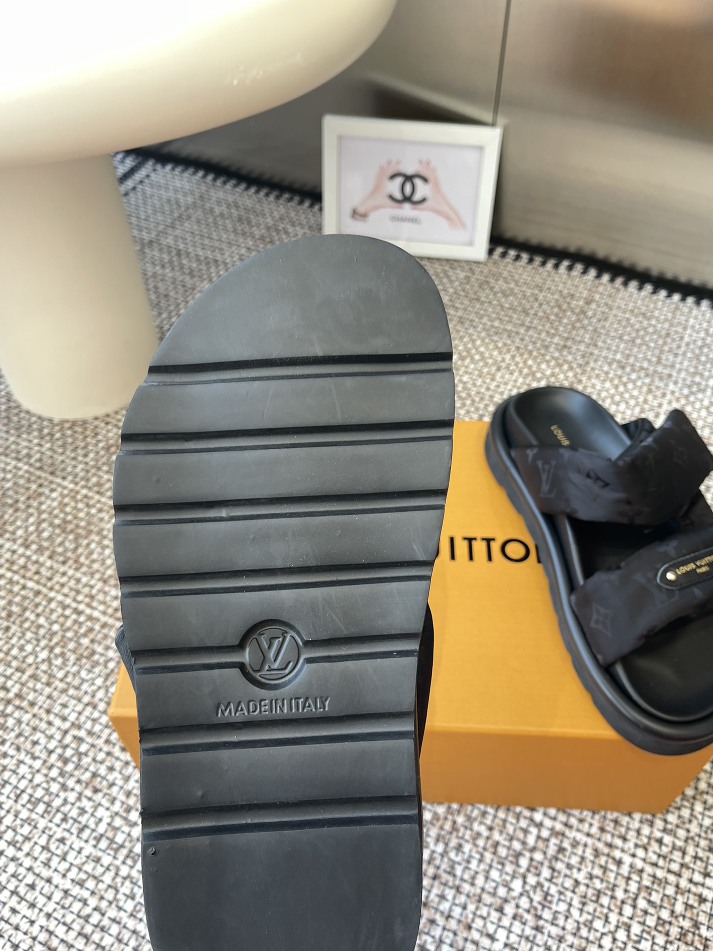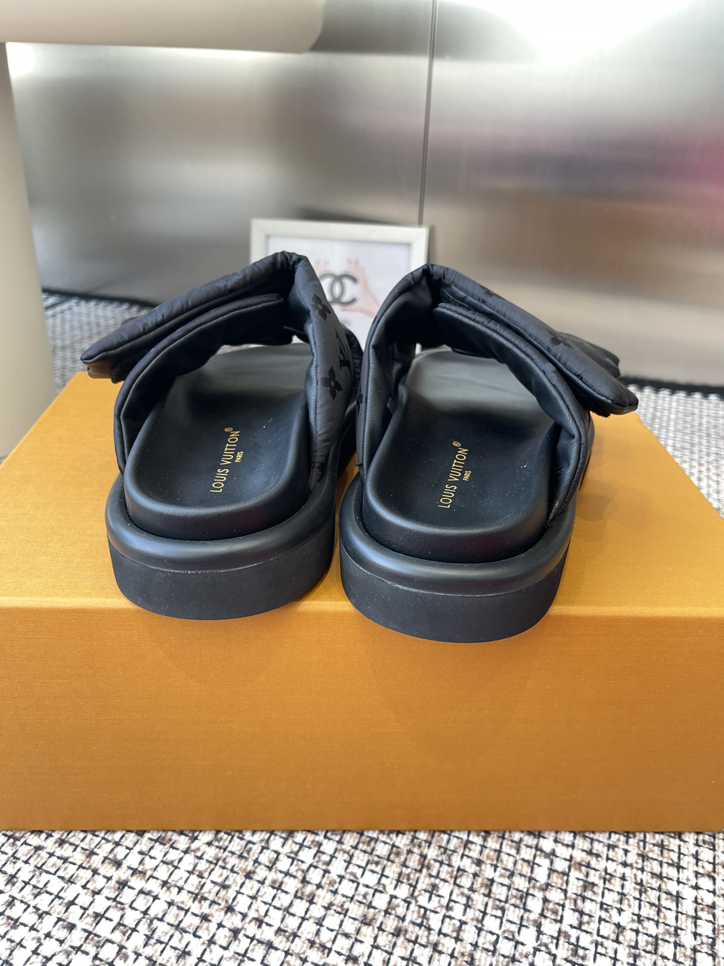 Louis Vuitton Black Monogram Canvas Slide Sandals – Comfortable Rubber Sole