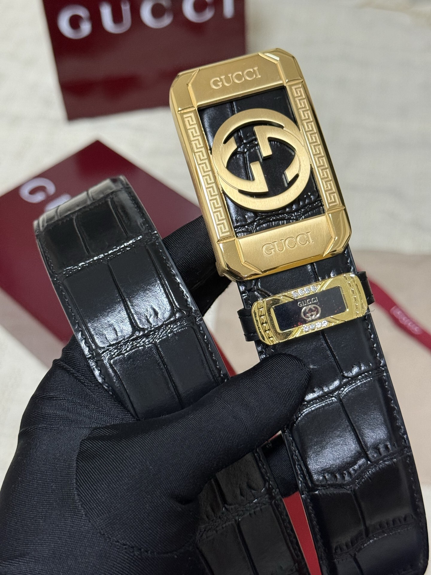 Indulge in the epitome of luxury with our Premium Leather Belt, inspired by the iconic Gucci style. This belt is more than just an accessory; it's a statement of refined taste and unwavering quality. Crafted from the finest materials and designed with meticulous attention to detail, this belt will elevate your wardrobe and add a touch of sophistication to any ensemble.