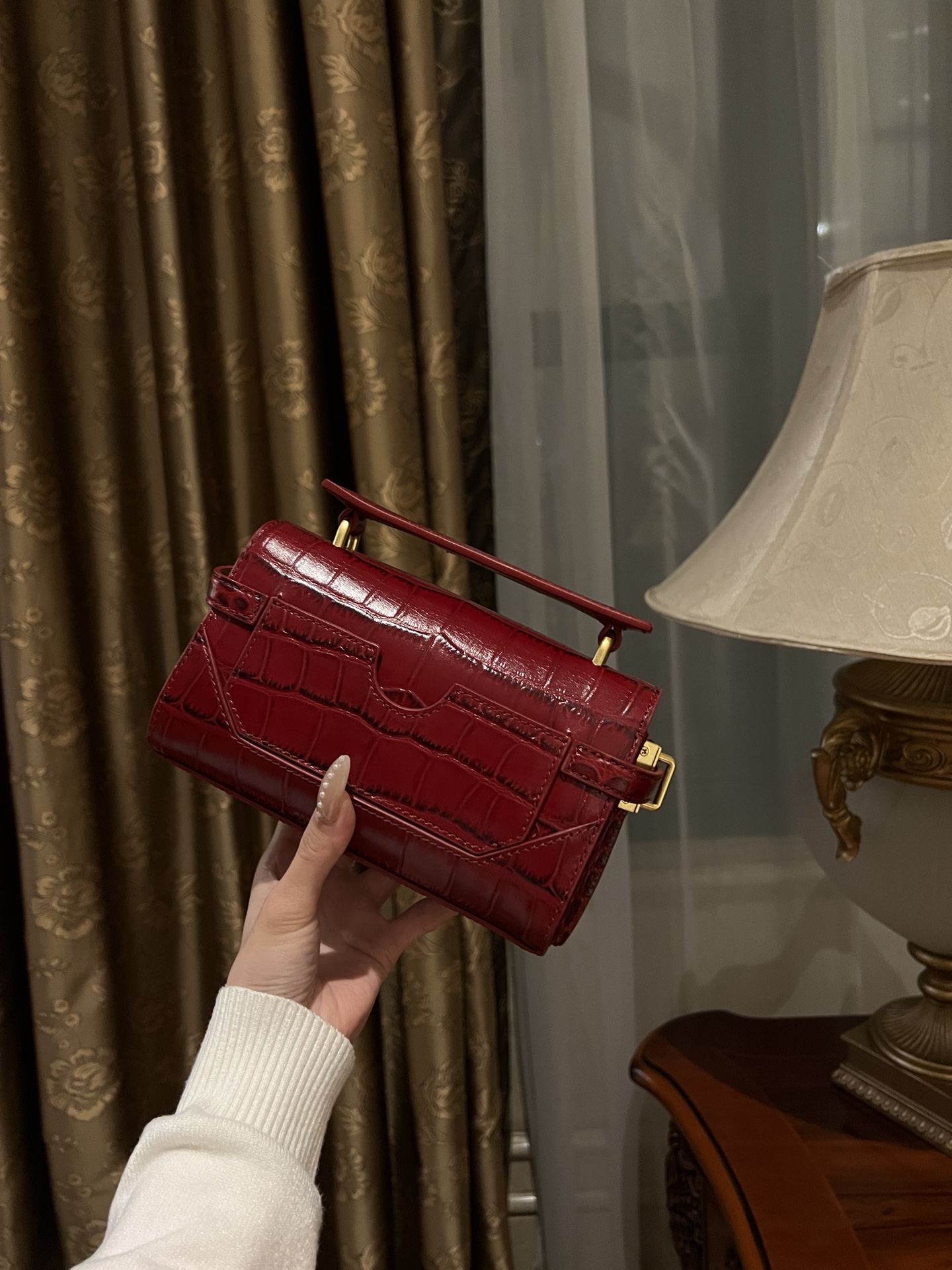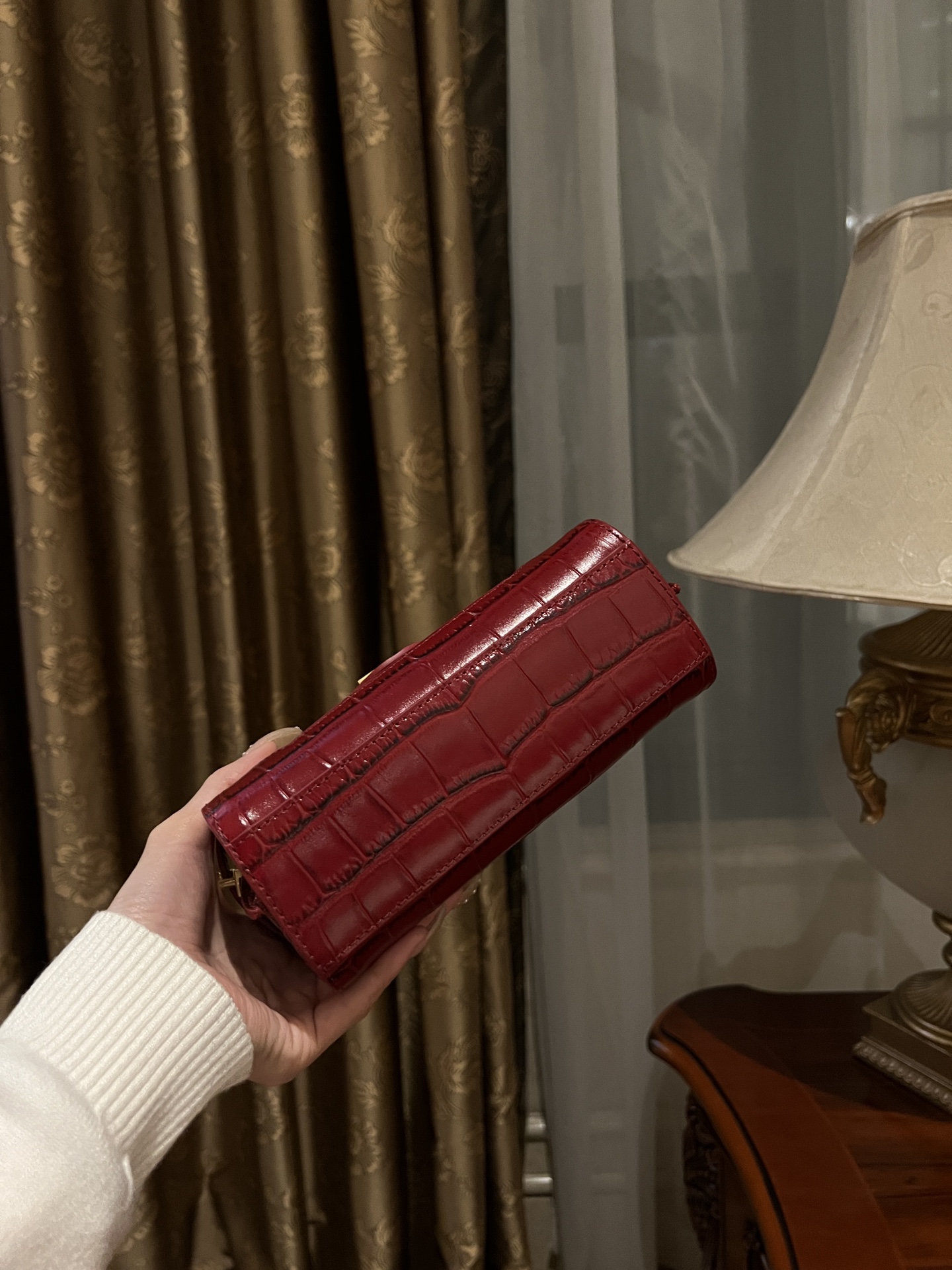 This Red Crocodile Embossed Bag isn't just an accessory; it's a reflection of your impeccable taste. Whether you're heading to a business meeting, a social event, or a romantic dinner, this bag will effortlessly elevate your look. Pair it with a classic little black dress for a timeless ensemble, or use it to add a pop of color to a neutral outfit. The possibilities are endless.