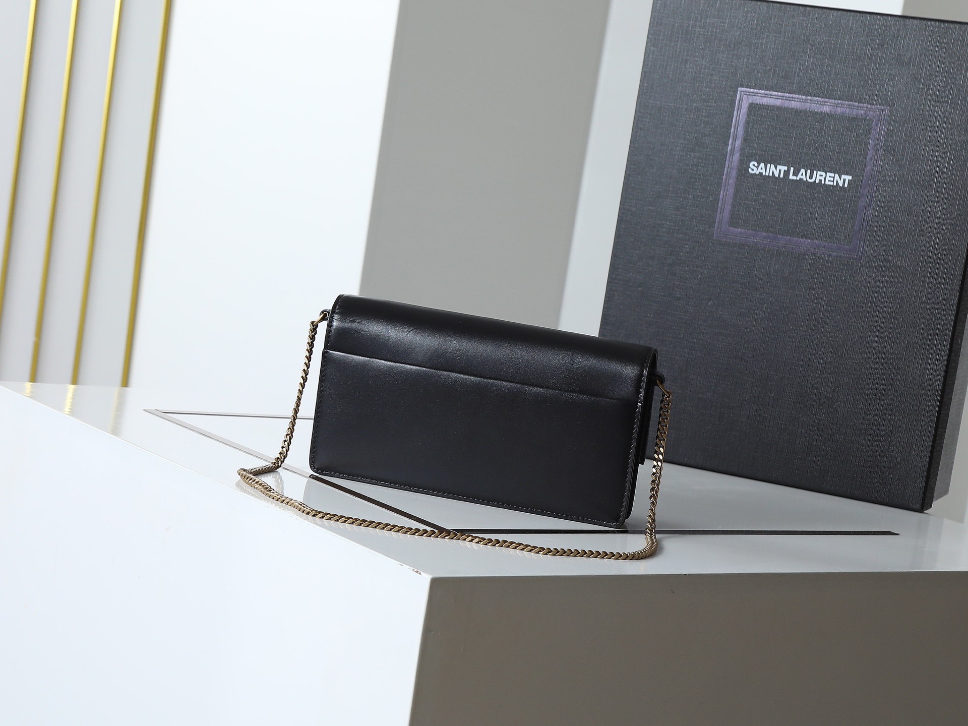 Saint Laurent Cassandre Phone Holder In Black Smooth Leather