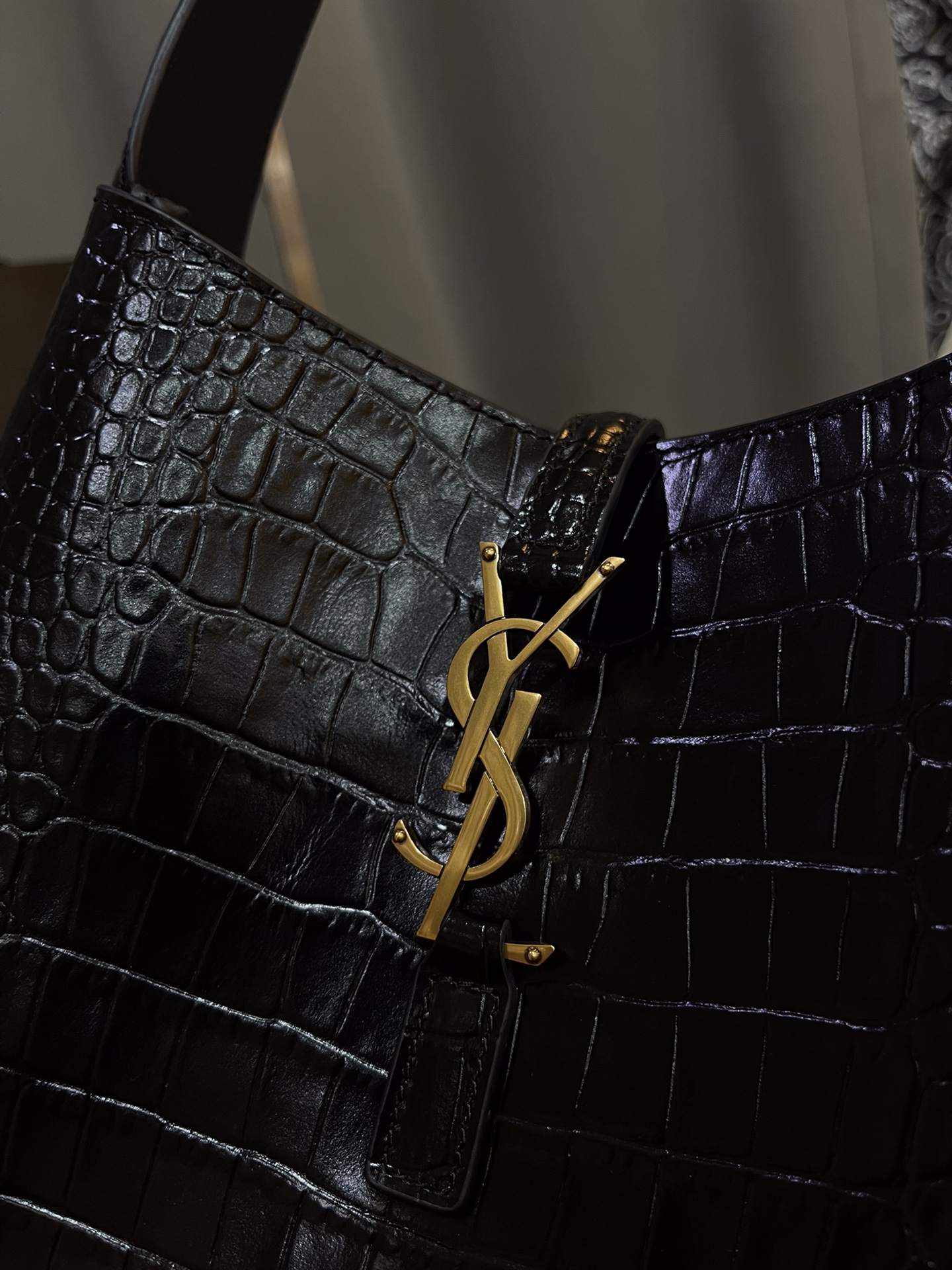 Saint Laurent Le 5 à 7 Croc-Embossed Calfskin Hobo Bag –