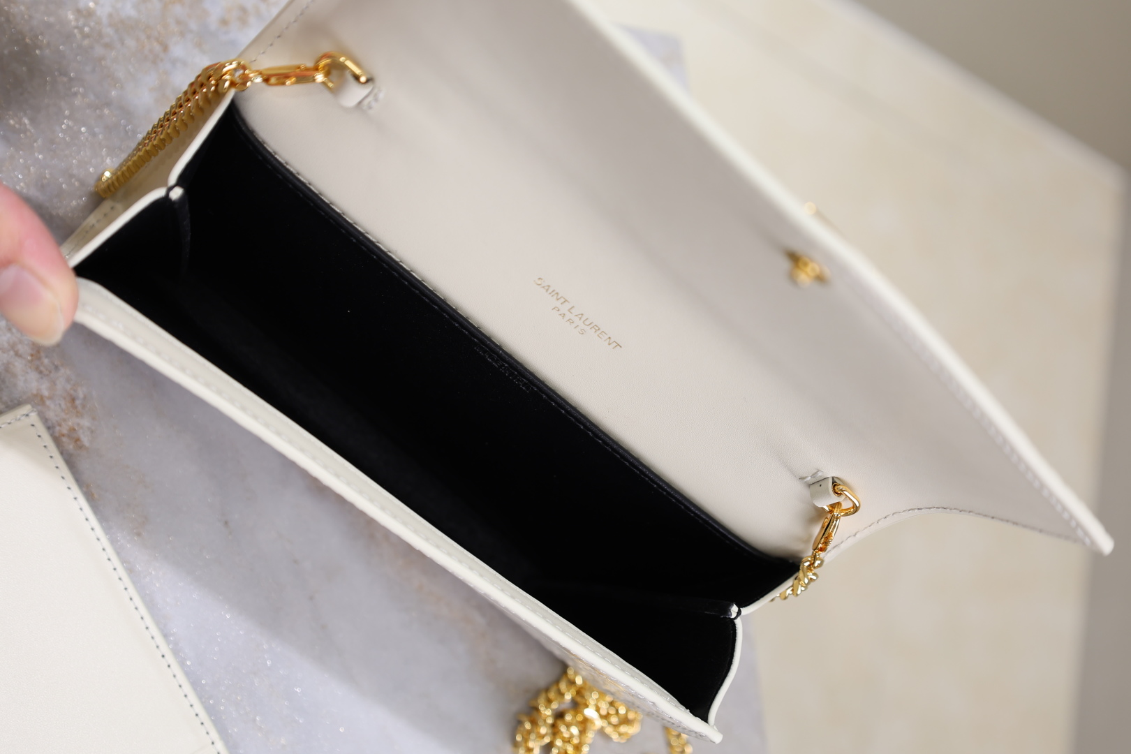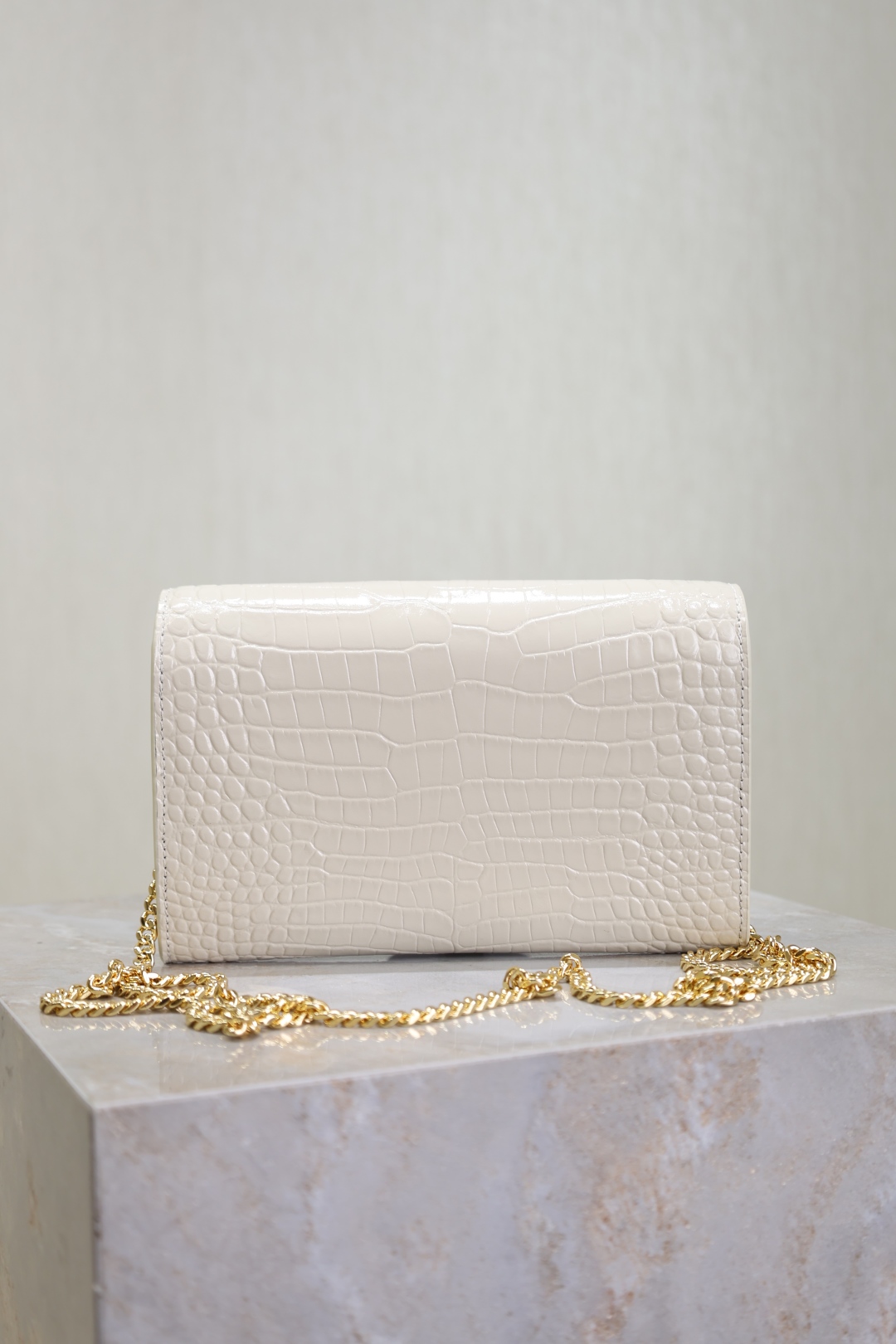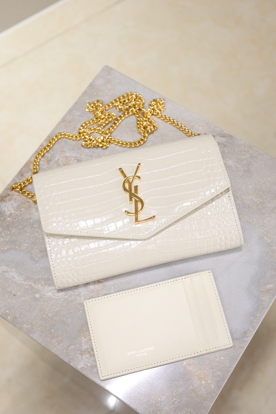 Saint Laurent Ysl Uptown Leather Wallet Clutch In Crema Soft
