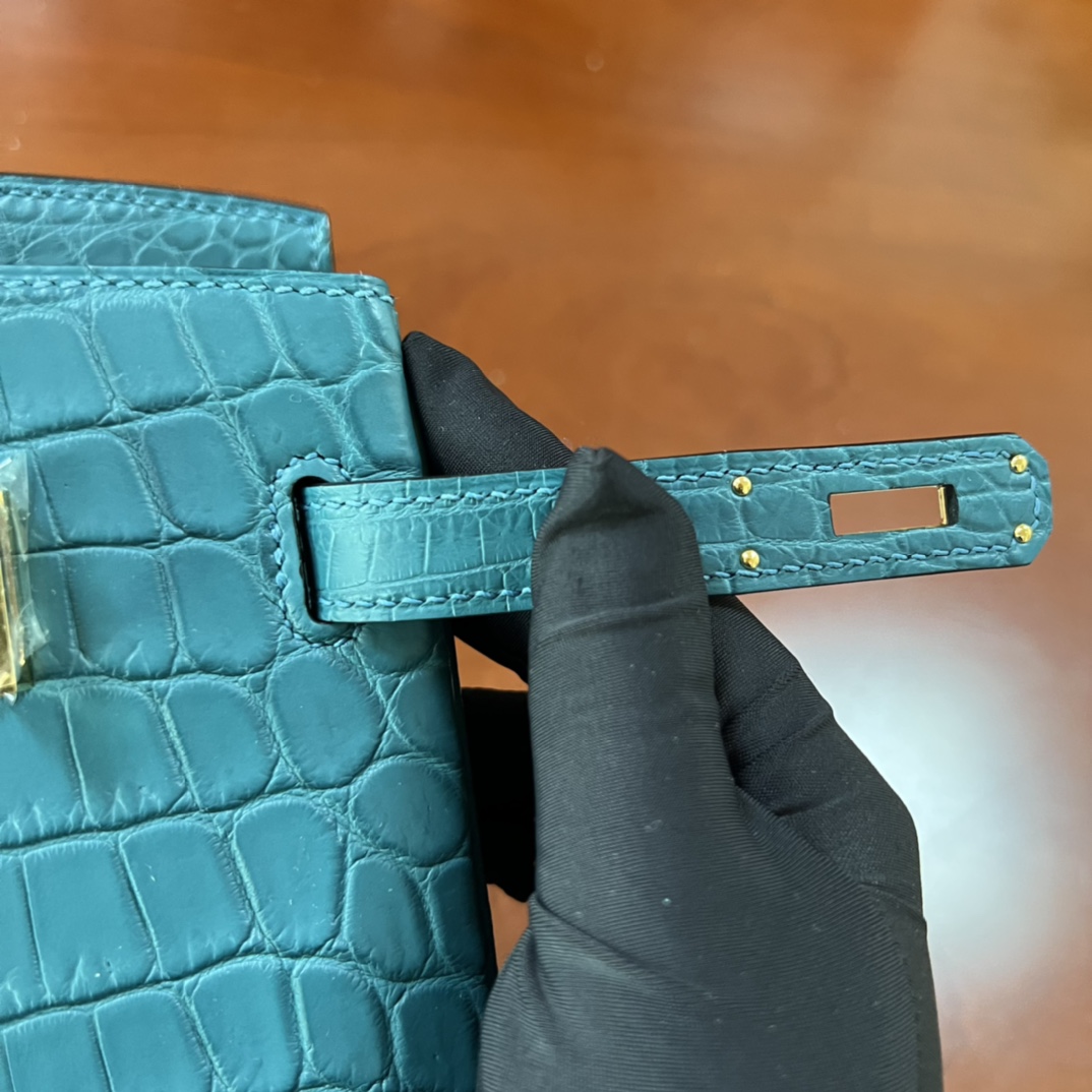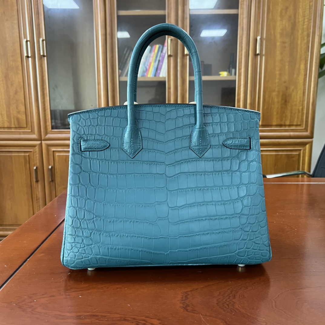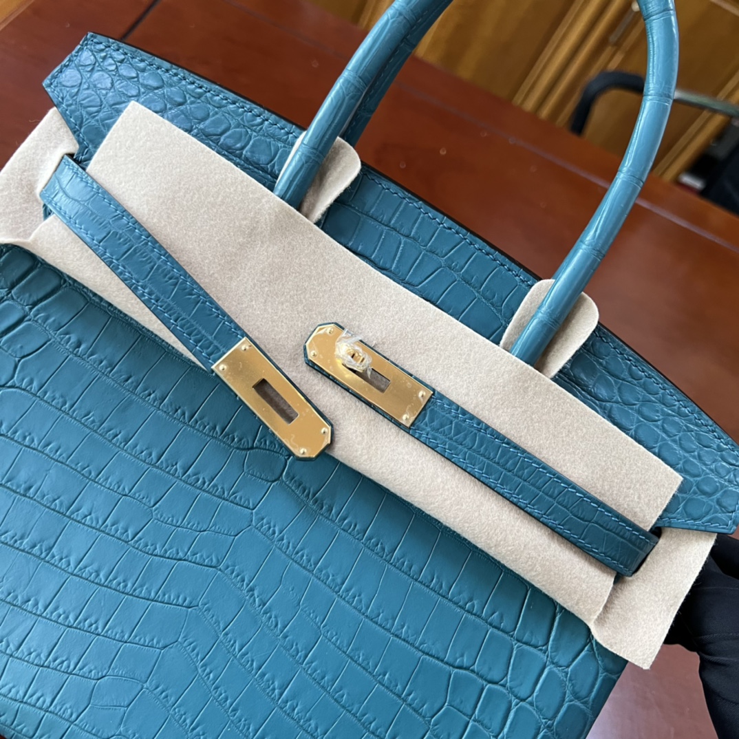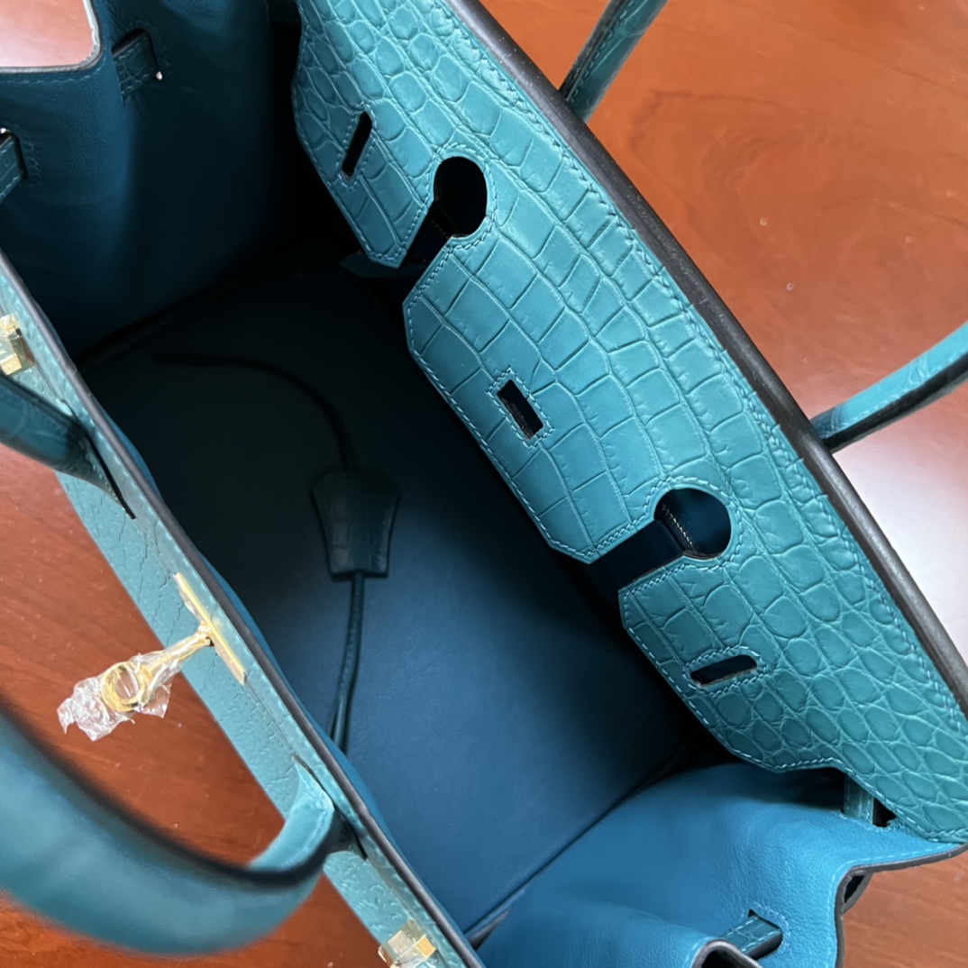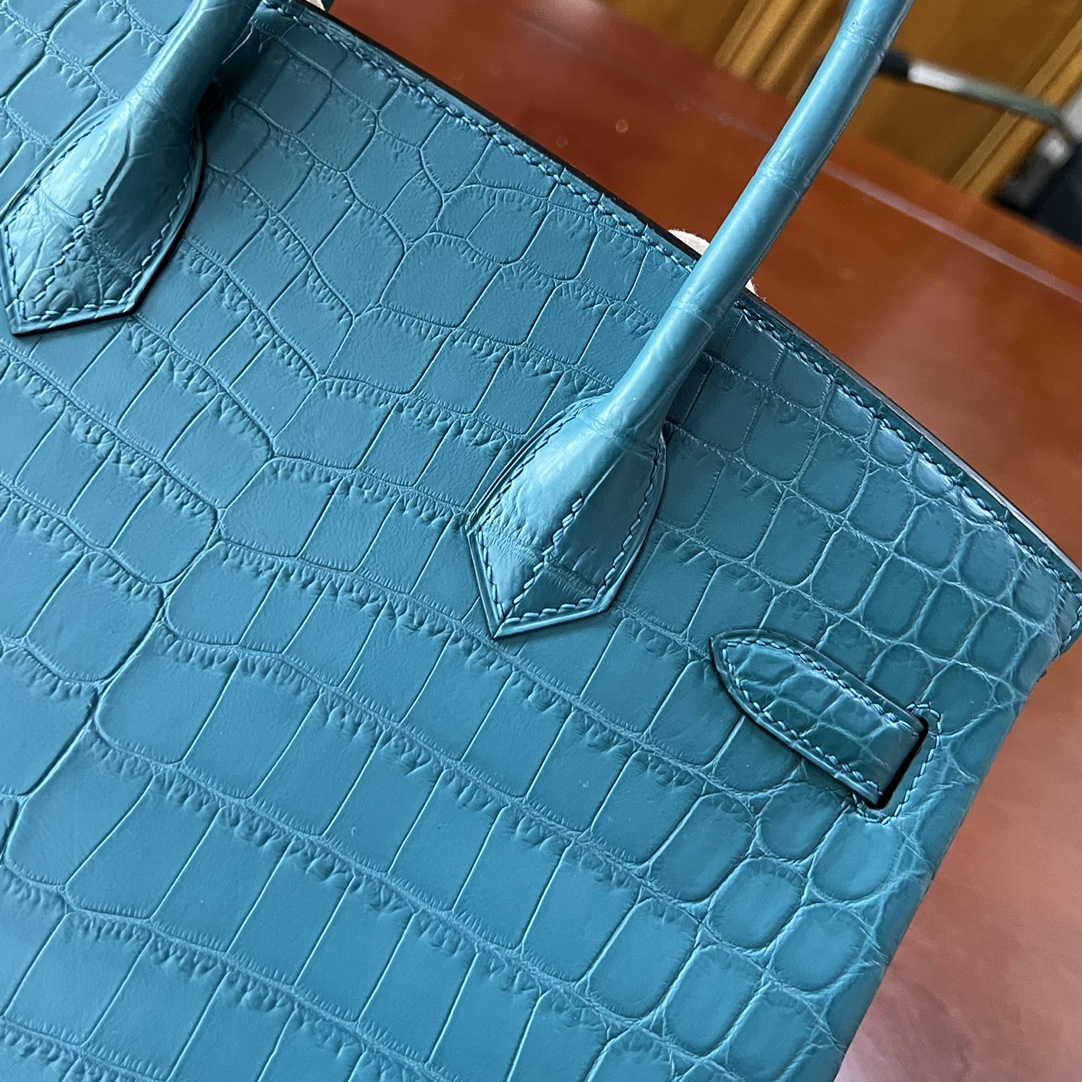 Túi Hermes Birkin Shiny Alligator Crocodile Noble blue Silver Hardware Handmade25cm