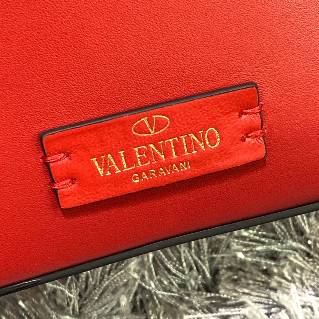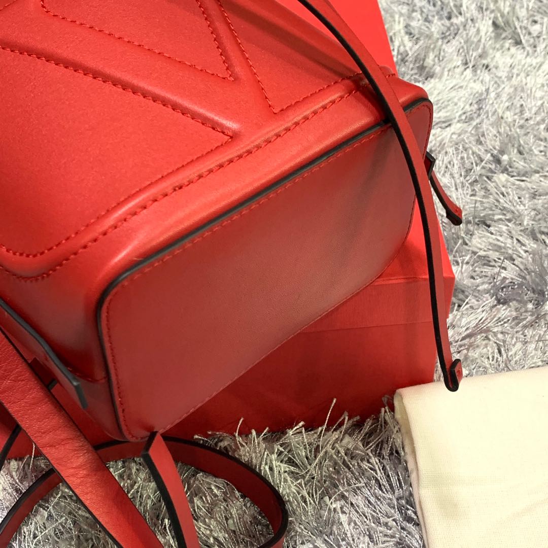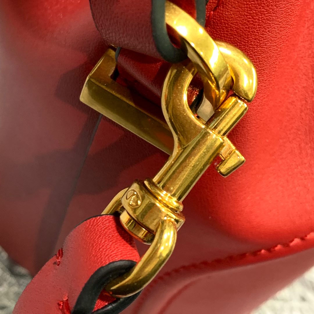 VALENTINO GARAVANI Calfskin Vlogo Walk Bucket Bag Red