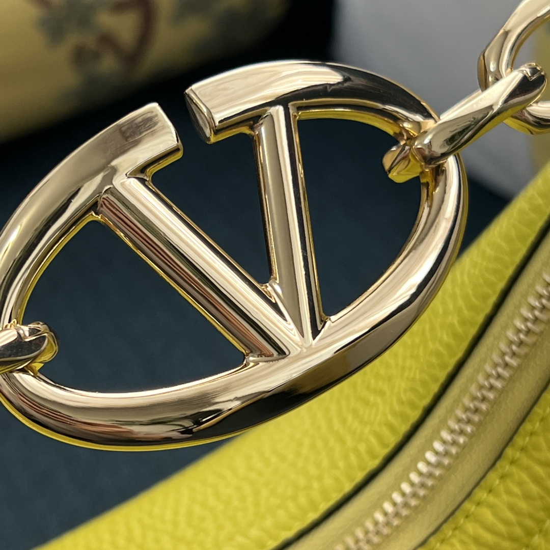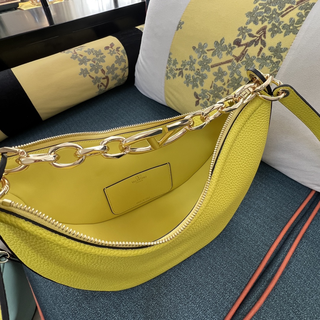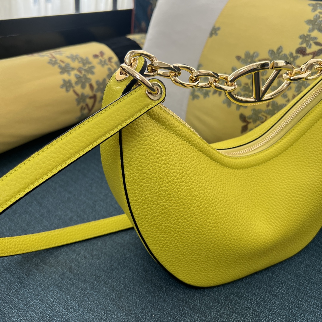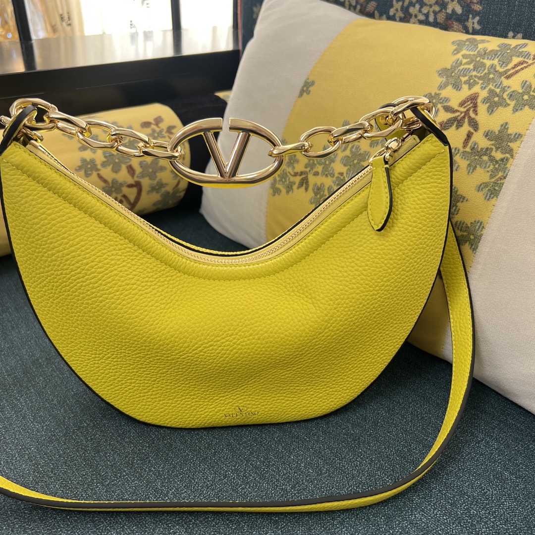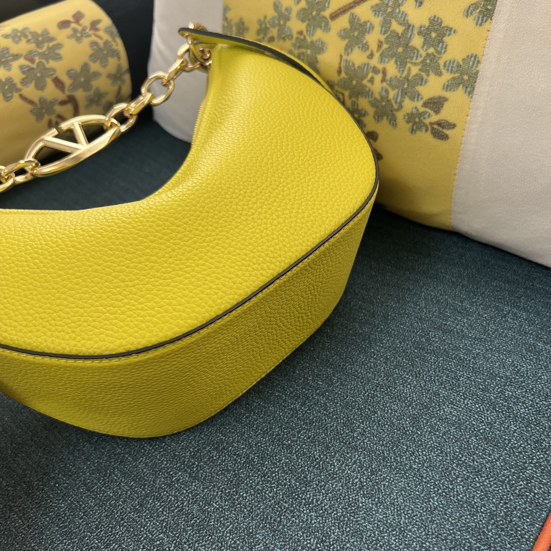 VALENTINO GARAVANI Grainy Calfskin Small Vlogo Moon Hobo YELLOW