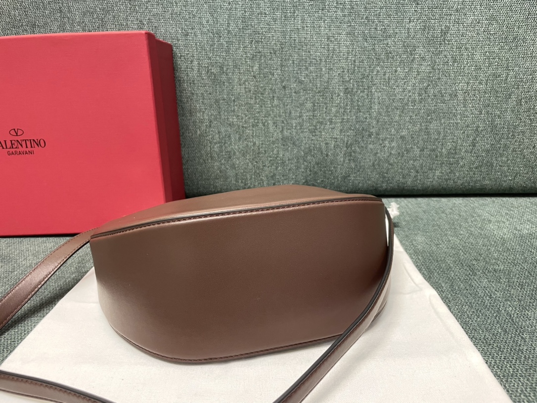 Valentino Garavani Vlogo Moon Mini Hobo Leather Bag - Brow