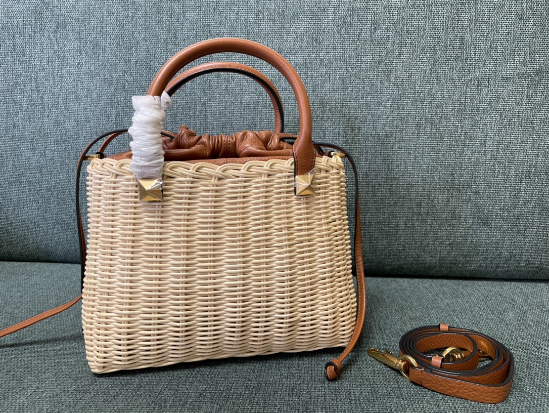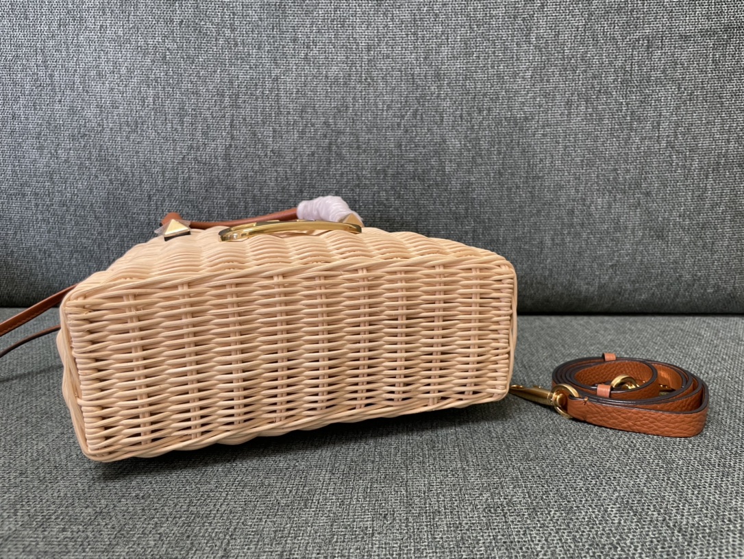 VALENTINO GARAVANI Wicker Vlogo Calfskin Top Handle Bag