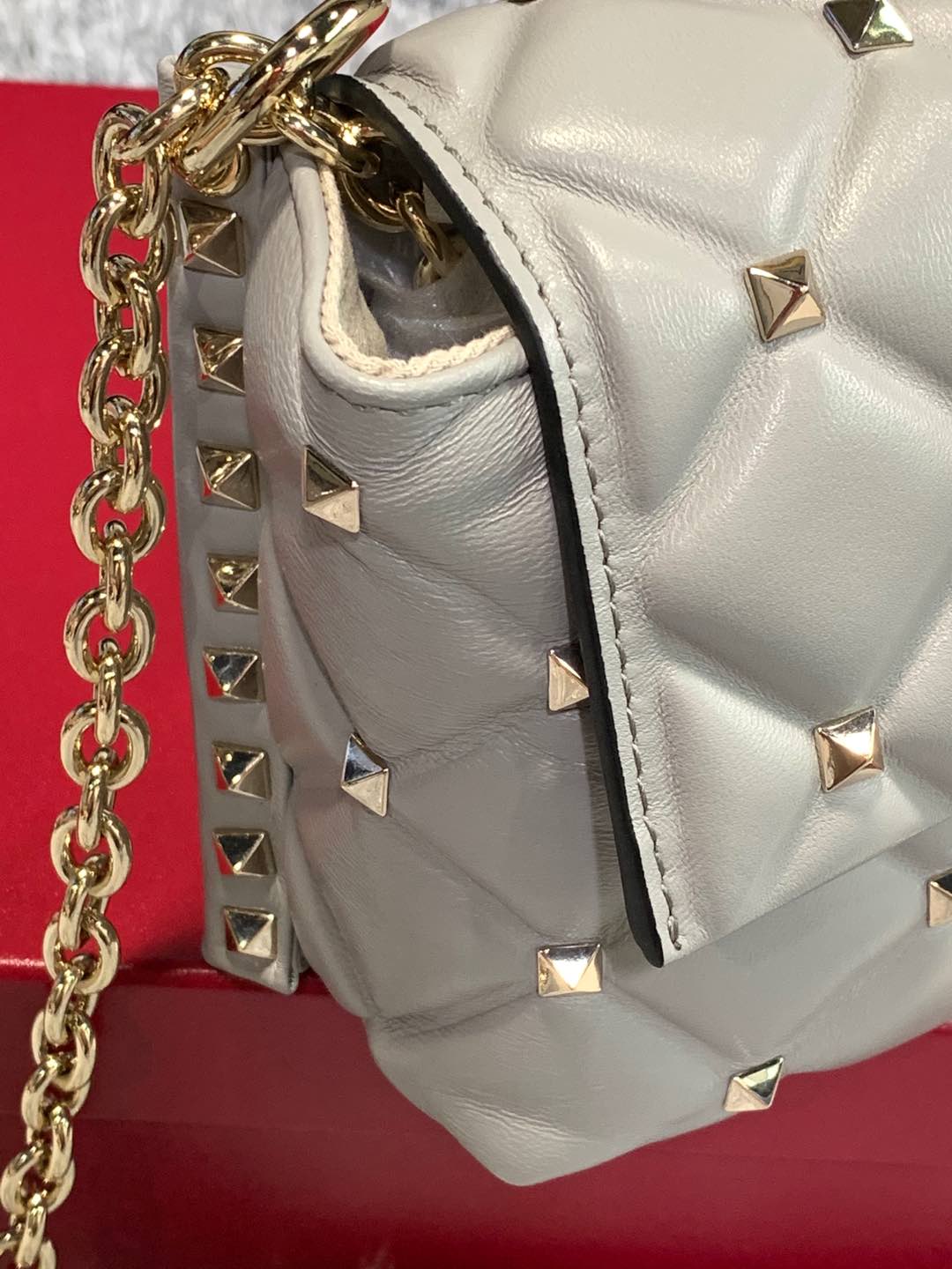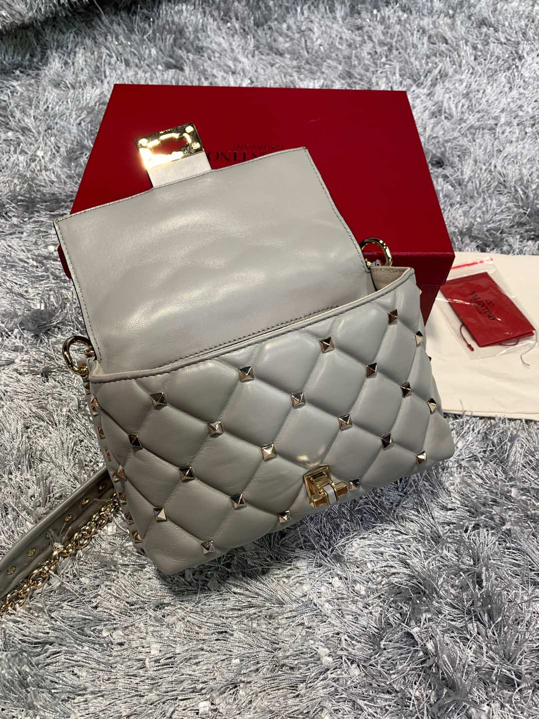 Valentino Leather Candy Stud Shoulder Bag - Grey Shoulder