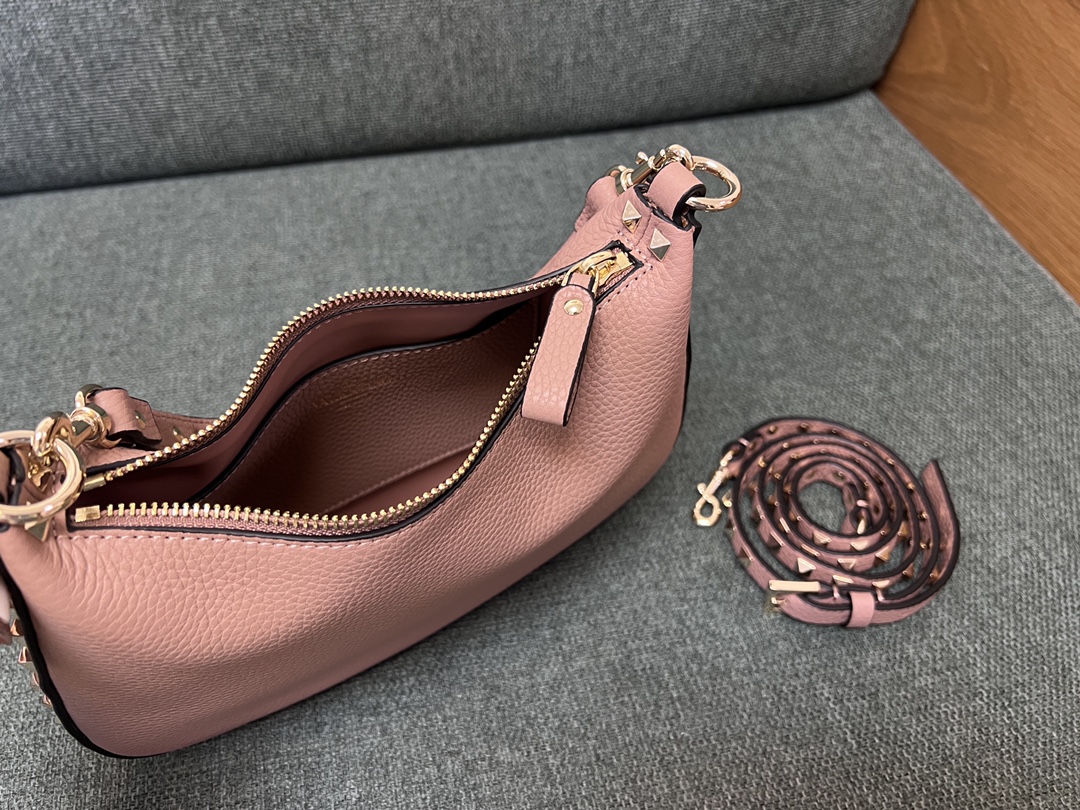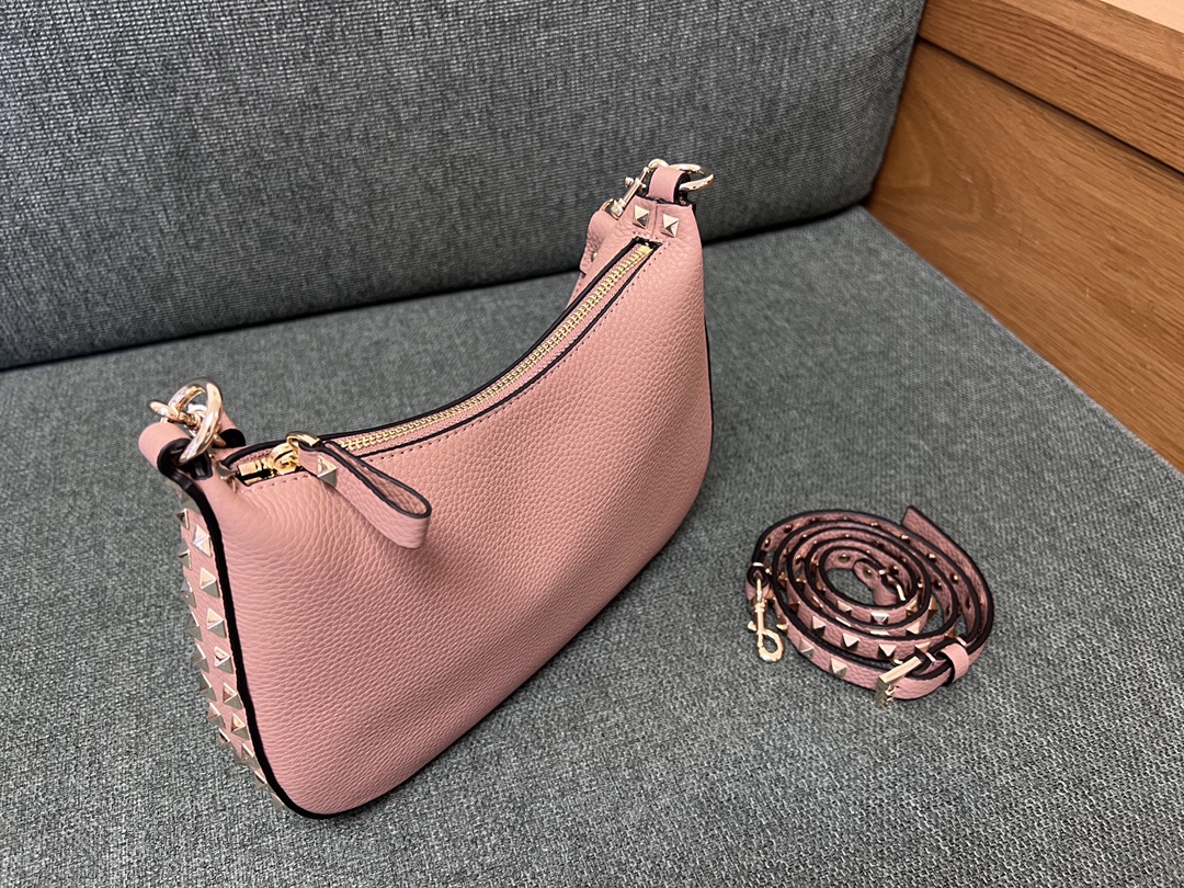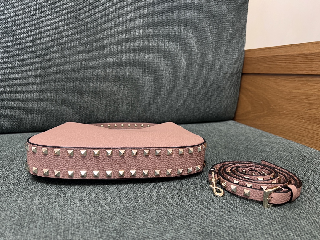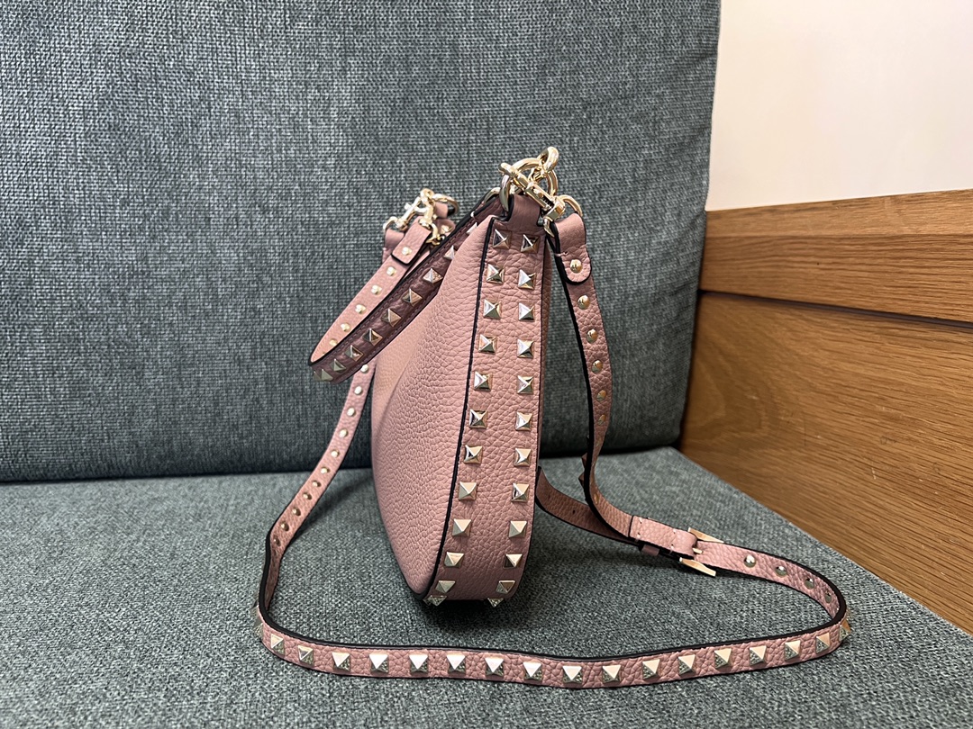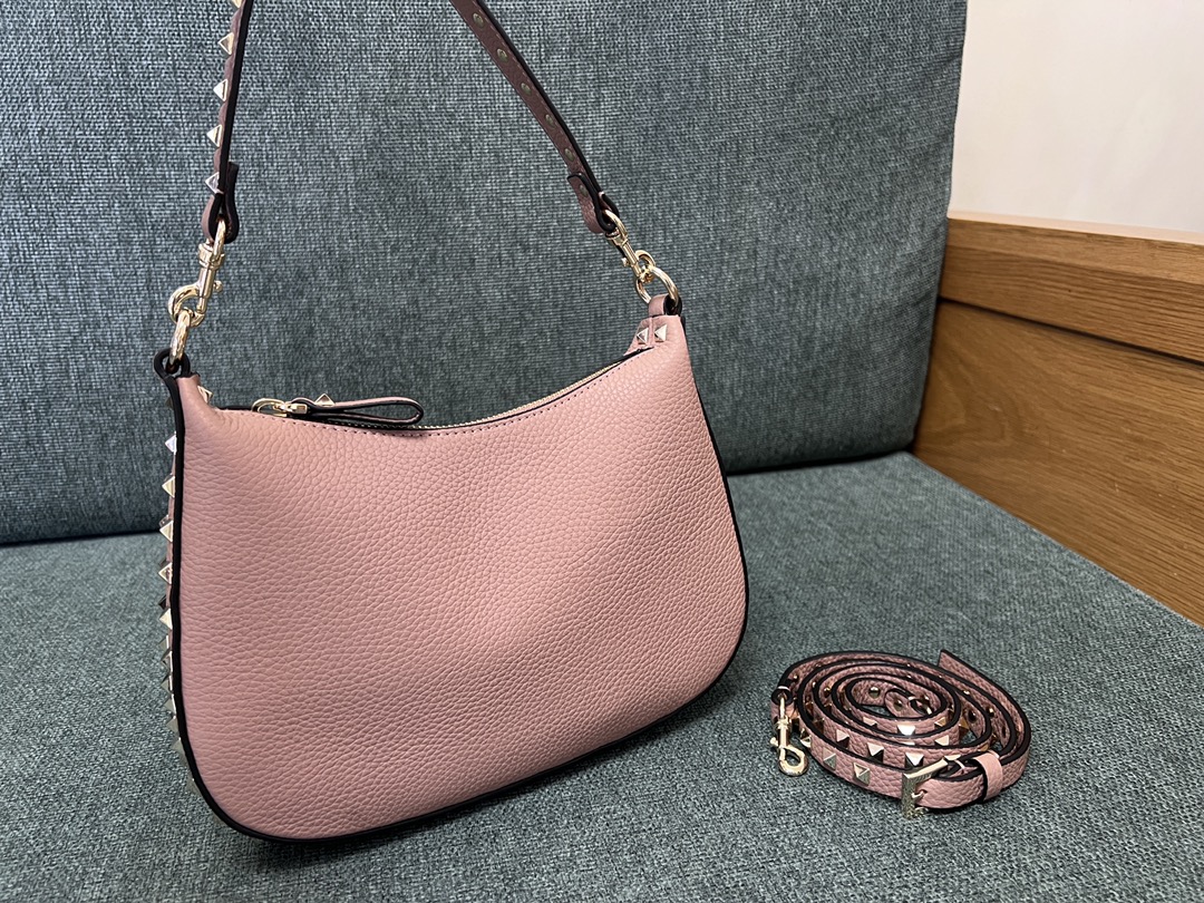 Valentino Rockstud Grainy Calfskin Small Hobo Bag Water
