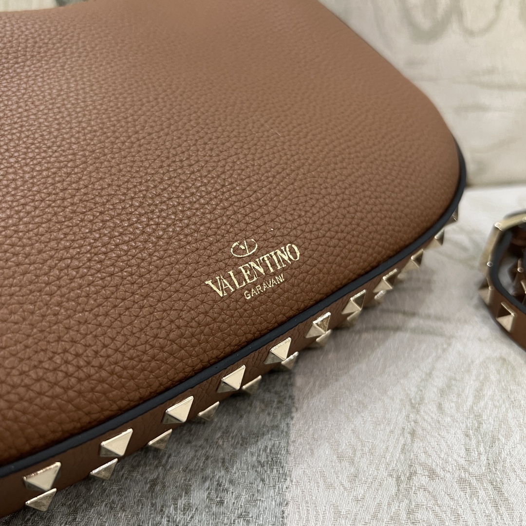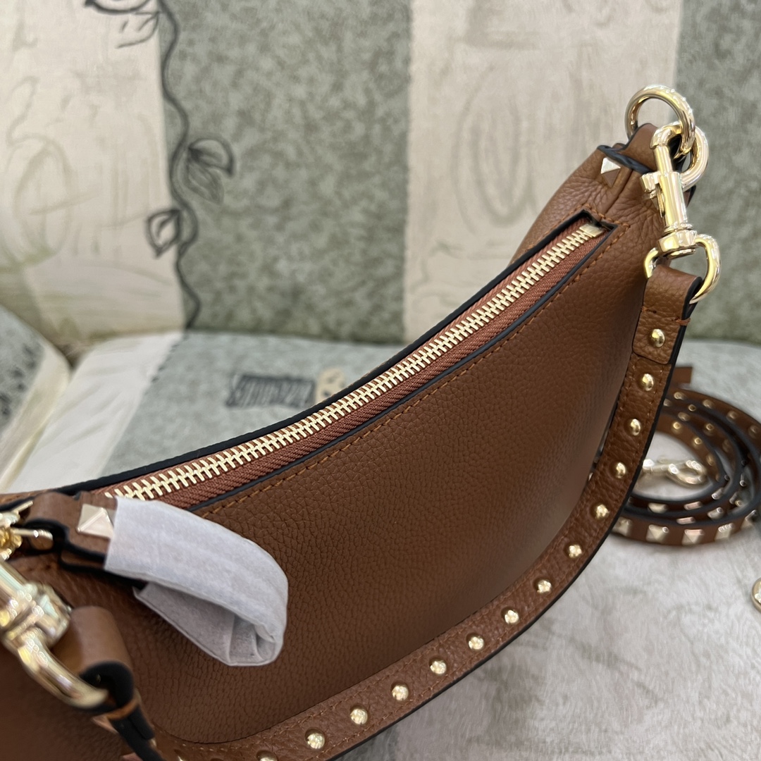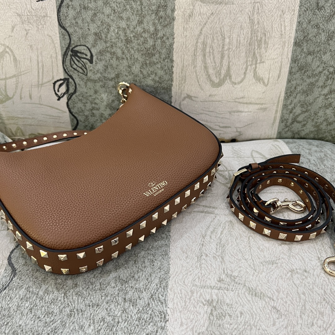 Valentino Rockstud Hobo Bag In Grainy Calfskin for Woman in Saddle