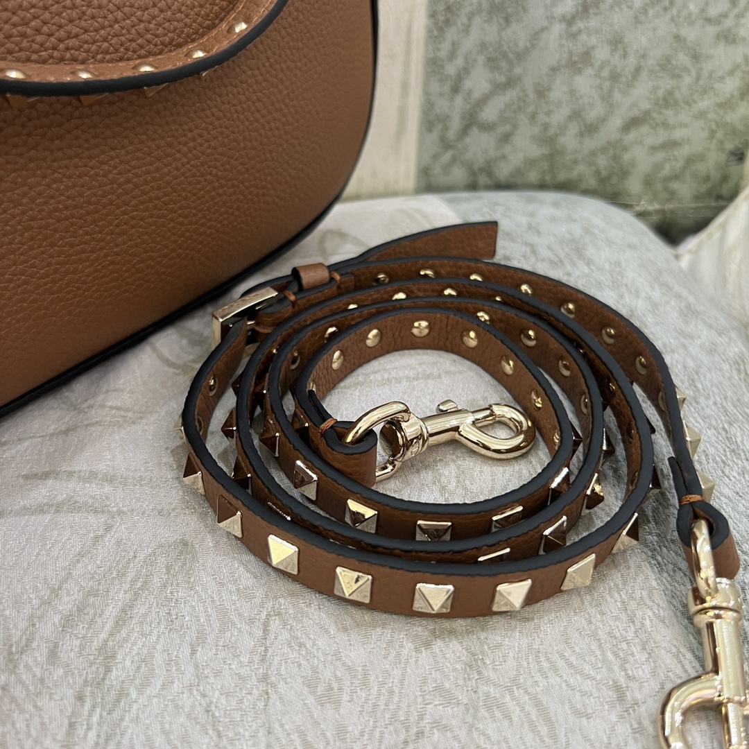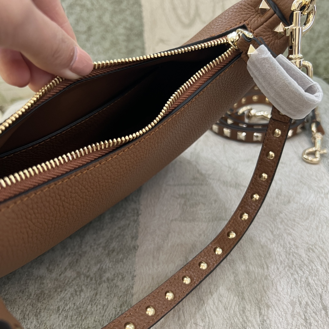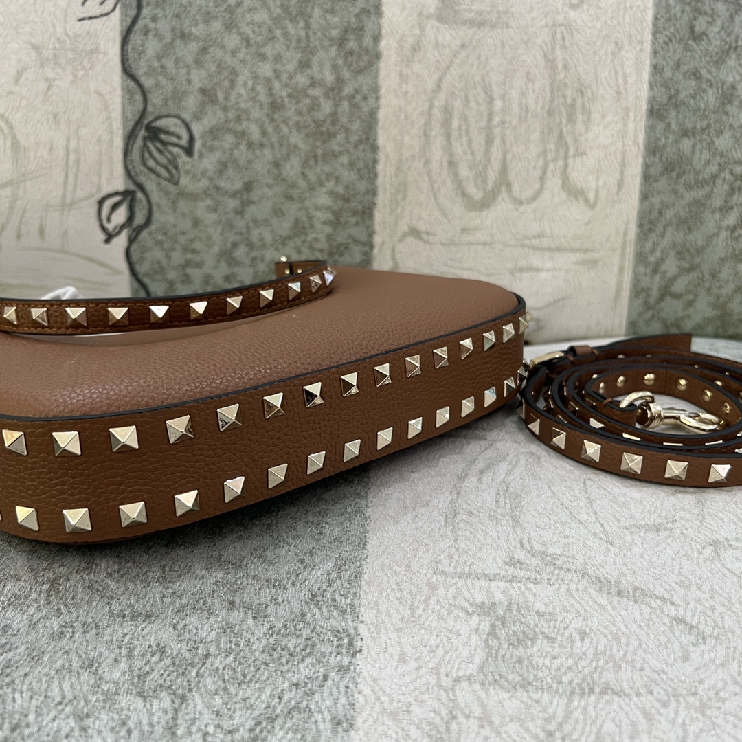 Valentino Rockstud Hobo Bag In Grainy Calfskin for Woman in Saddle