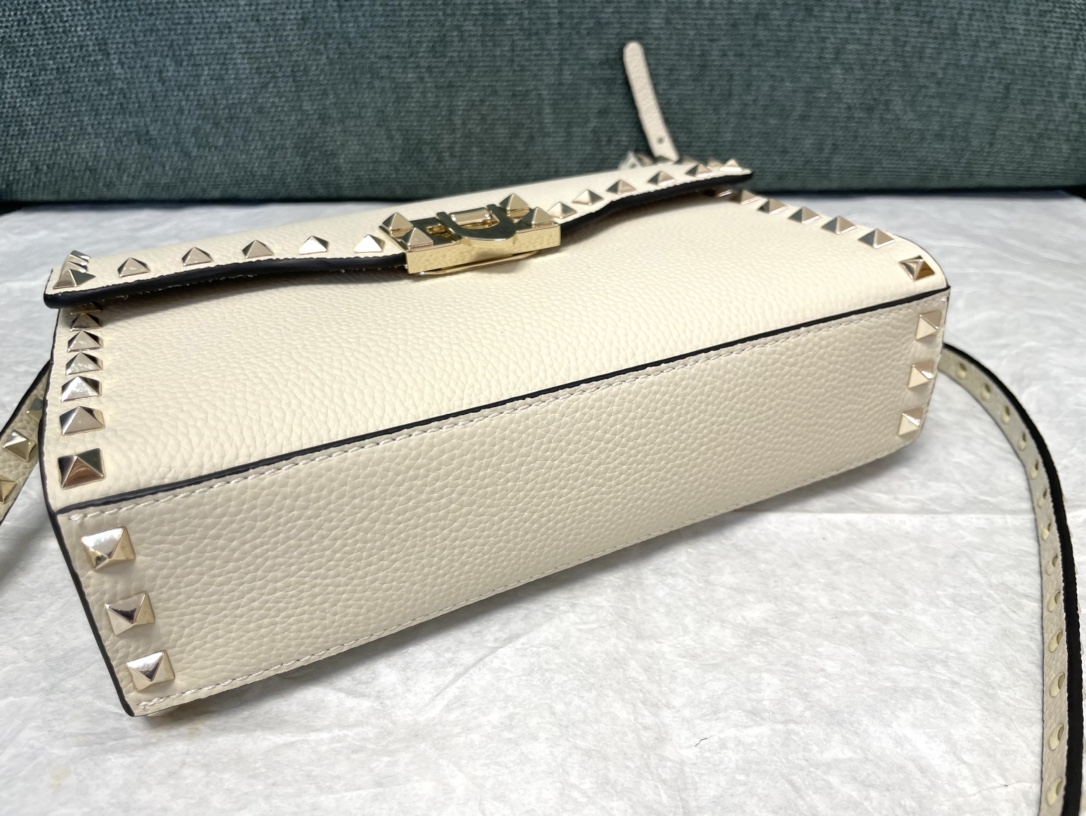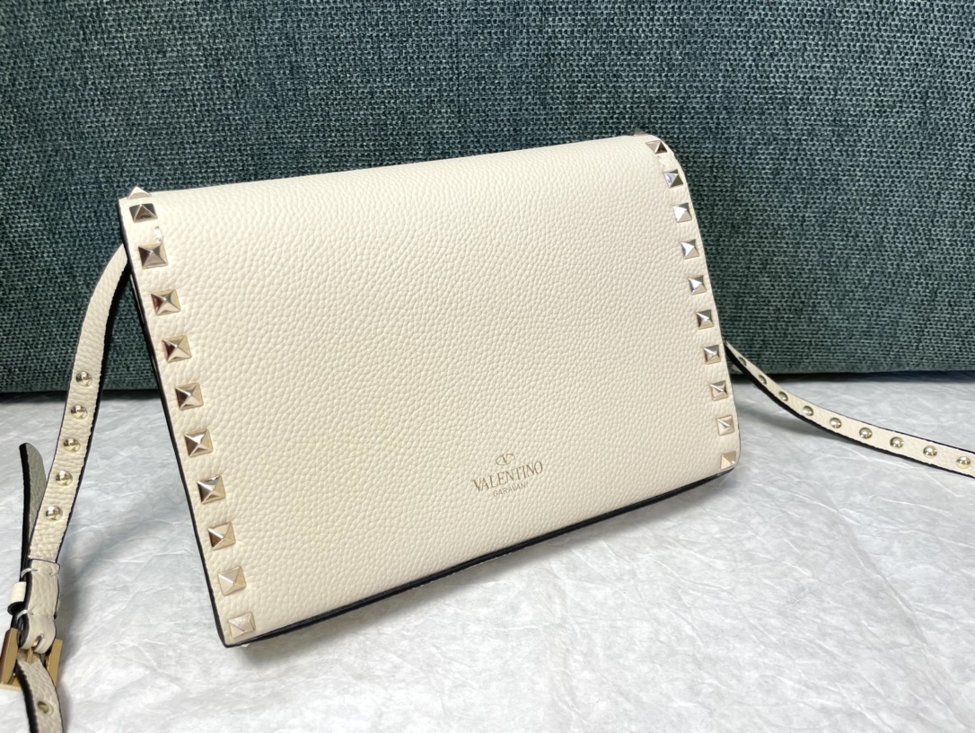 Valentino Small Rockstud Grainy Calfskin Crossbody Bag for Woman in Saddle white